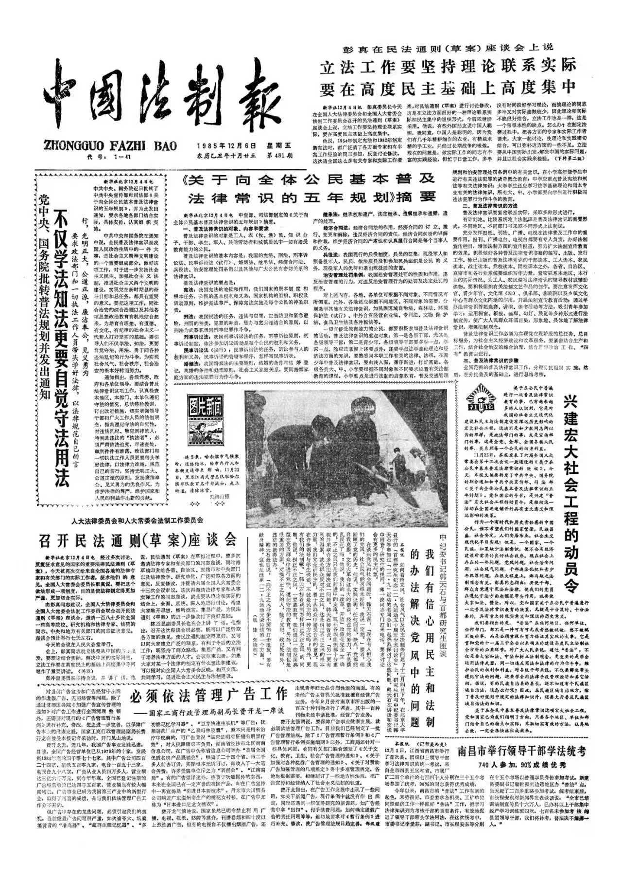 1985年11月5日,中共中央、國務(wù)院發(fā)出通知,轉(zhuǎn)發(fā)中央宣傳部、司法部《關(guān)于向全體公民基本普及法律常識的五年規(guī)劃》。通知明確指出,全民普及法律常識是我國人民政治生活中的一件大事,是社會主義精神文明建設(shè)的一個重要組成部分。同年11月22日,《全國人民代表大會常務(wù)委員會關(guān)于在公民中基本普及法律常識的決議》由六屆全國人大常委會第十三次會議通過。自此,國家以五年為周期,有計劃、有步驟地在全體公民中開展法治宣傳教育,全民普法正式走進(jìn)千家萬戶的日常生活。