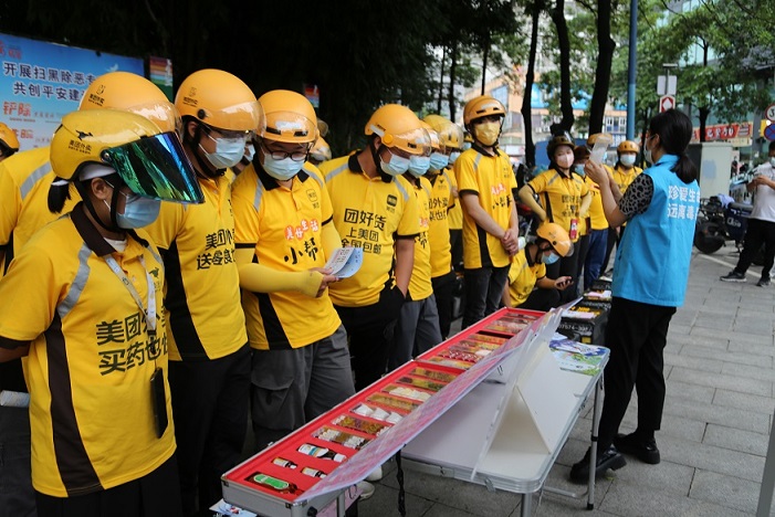 為扎實(shí)推進(jìn)禁毒宣傳“進(jìn)萬家”,6月8日,廣東省深圳市鹽田區(qū)鹽田街道聯(lián)合美團(tuán)外賣公司,共同開展以“心有邊界,堅(jiān)守自我”為主題的禁毒宣傳活動(dòng),通過外賣的形式將毒品預(yù)防知識傳遞到千家萬戶,以提高轄區(qū)居民抵御毒品的能力。