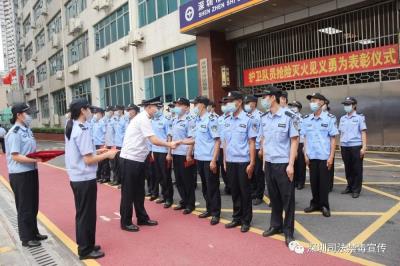 滅火,是消防員的“看家本領(lǐng)”,但面對火情,戒毒警察們也會毫不猶豫逆行而上。近日,廣東省深圳市司法局第一強(qiáng)制隔離戒毒所(以下簡稱“強(qiáng)戒一所”)舉行搶險滅火見義勇為表彰儀式,對妥善處置兩次火情的14名警戒護(hù)衛(wèi)隊(duì)隊(duì)員進(jìn)行表彰。