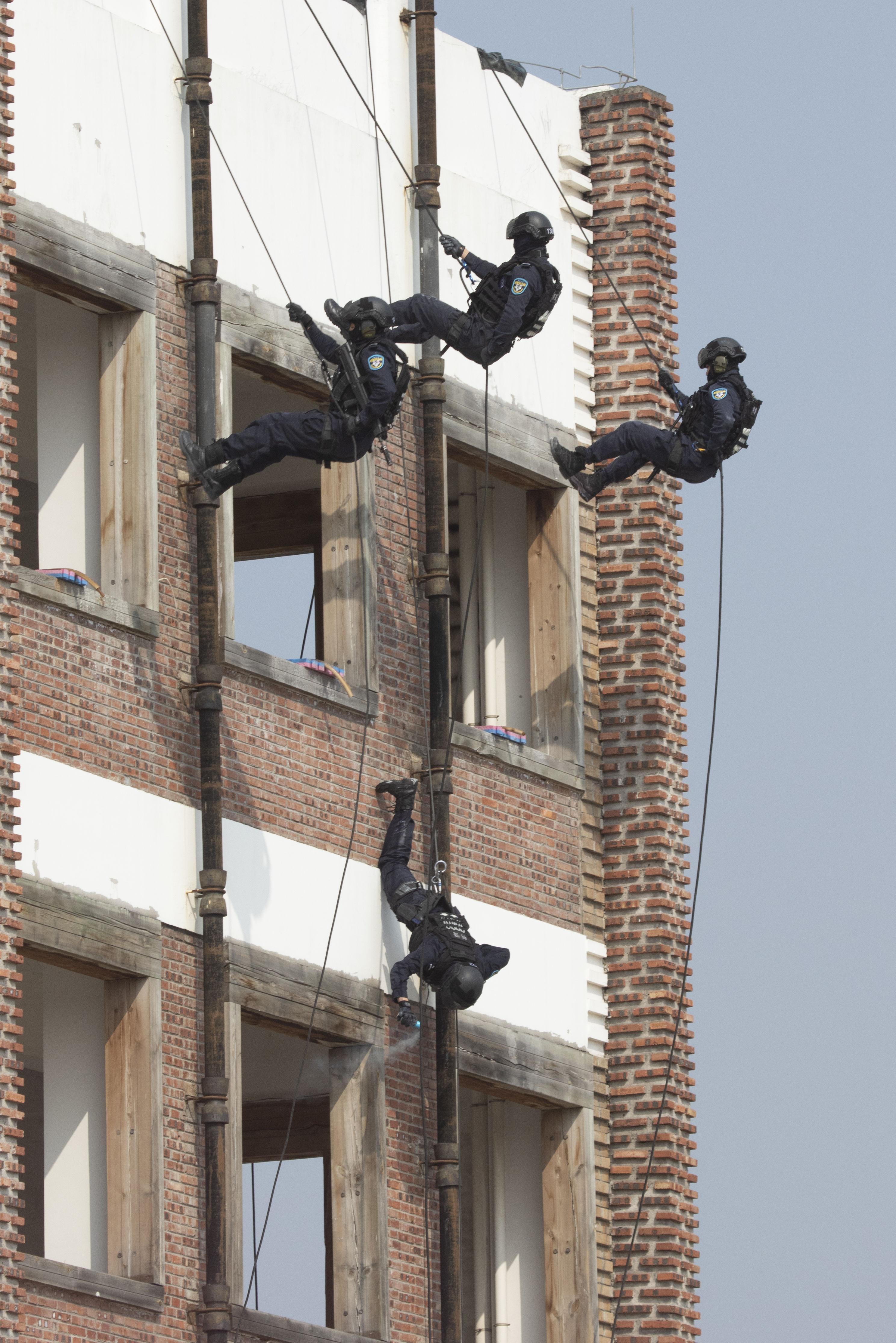 號令一出三軍動,金戈鐵馬礪雄兵?!伴_訓日”訓練活動現(xiàn)場,參訓民警重點圍繞反恐防暴、維穩(wěn)處突、巡防管控等實戰(zhàn)任務(wù)需要,開展防暴隊形及處置、突擊攻堅、戰(zhàn)術(shù)射擊等科目演練。特警尖刀化身“空中飛人”攀樓滑降、突擊攻堅;戰(zhàn)訓精英緊貼實戰(zhàn),盾棍攻防、擒拿格斗;搜排爆機器人精準操控、靶向掃描;劍齒虎防暴車攻防兼?zhèn)洹o堅不摧……2300名參訓警力聞令而動、遵令而行,從體能比拼到技能較量,從基礎(chǔ)課目到專業(yè)技能輪番上陣,將練兵氛圍推向高潮。