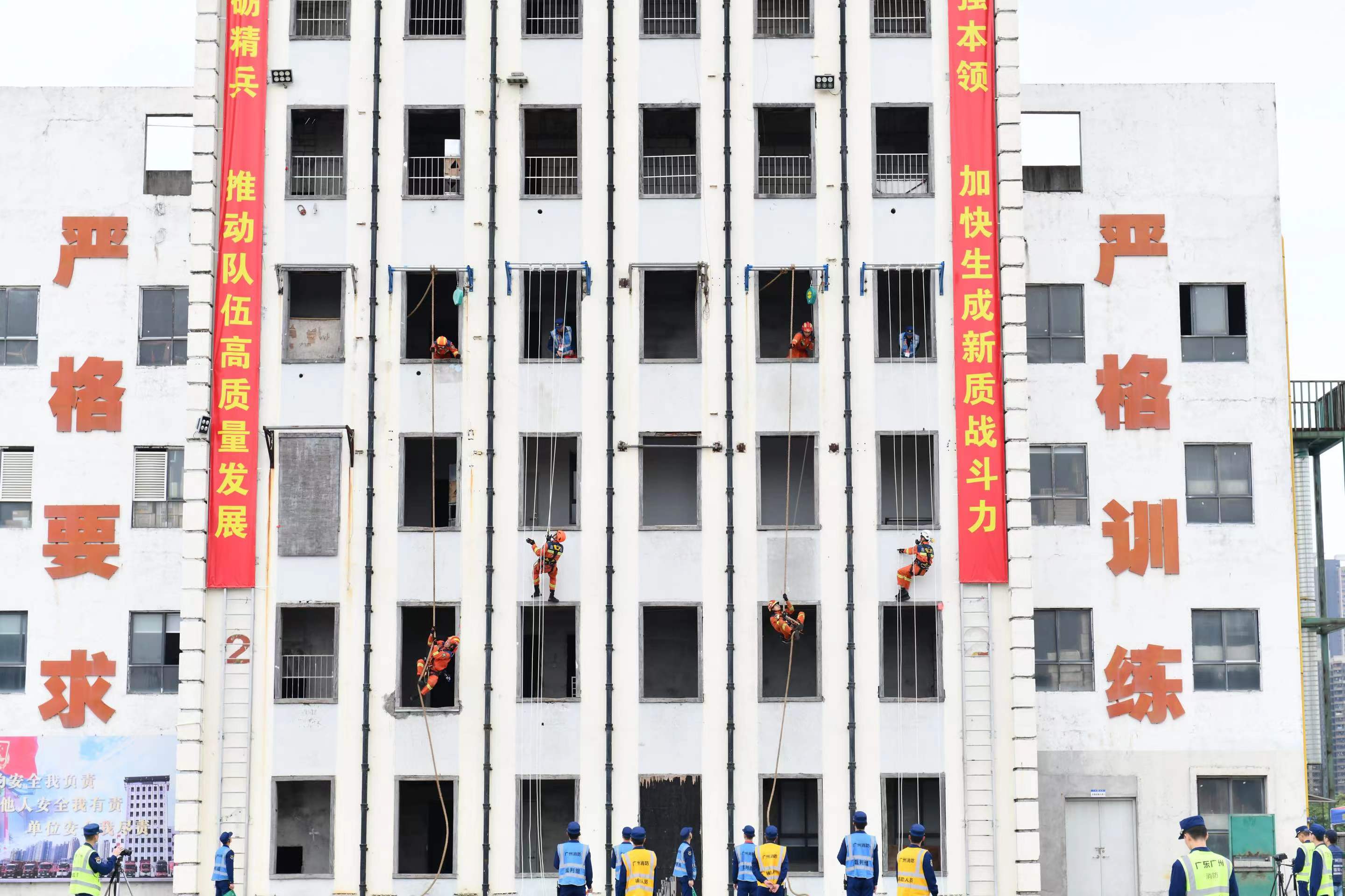 賽場上,各代表隊(duì)爭分奪秒地展開激烈角逐,比速度、比能力、比耐性,挑戰(zhàn)自我、挑戰(zhàn)極限,將平日訓(xùn)練的消防救援技能一一發(fā)揮。