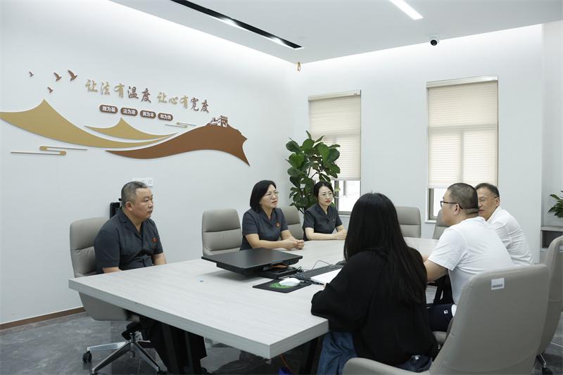 朱莉娜與合議庭成員向當(dāng)事人做釋法說理工作