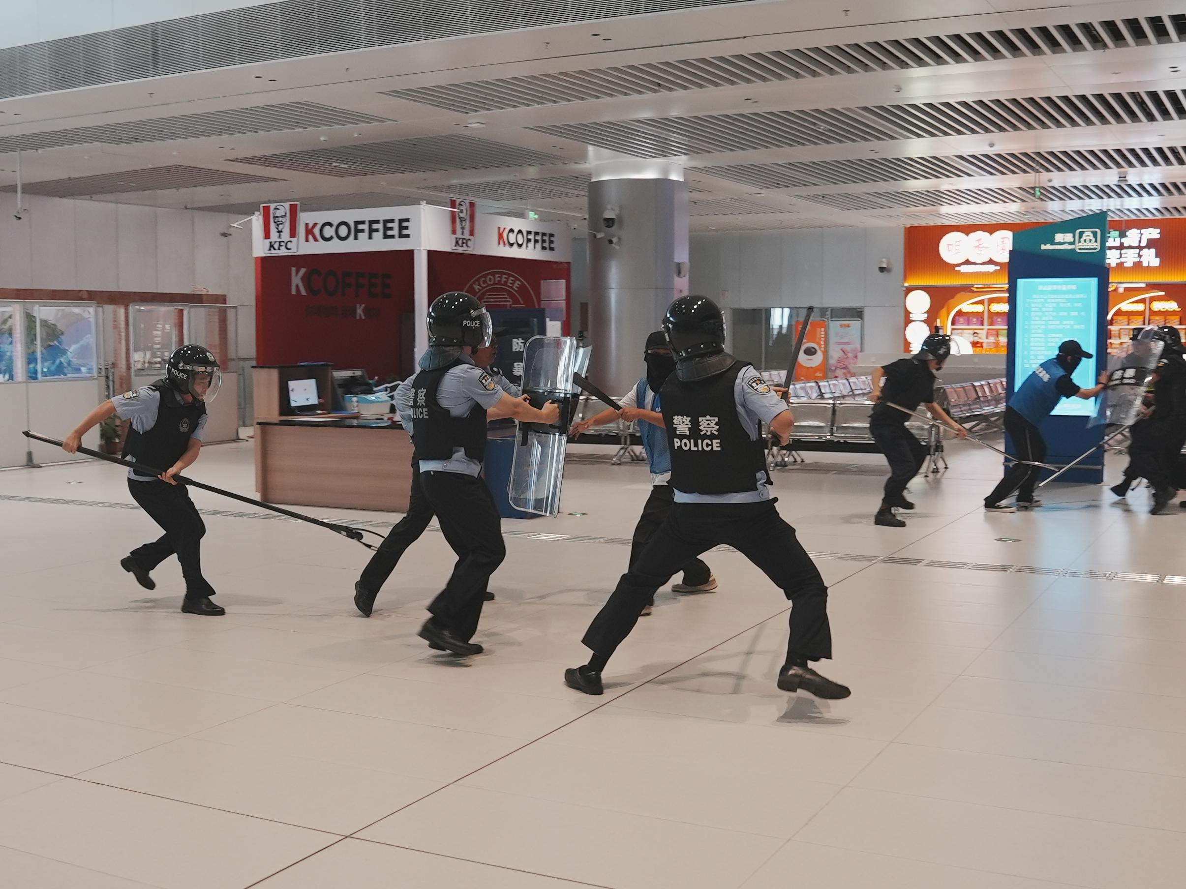 “快反小組立即出動處置!”在廣東中山客運口岸出境大廳,移民管理警察手持警械聞令而動,不懼“不法分子”的暴力攻擊,迅速對其進行控制。