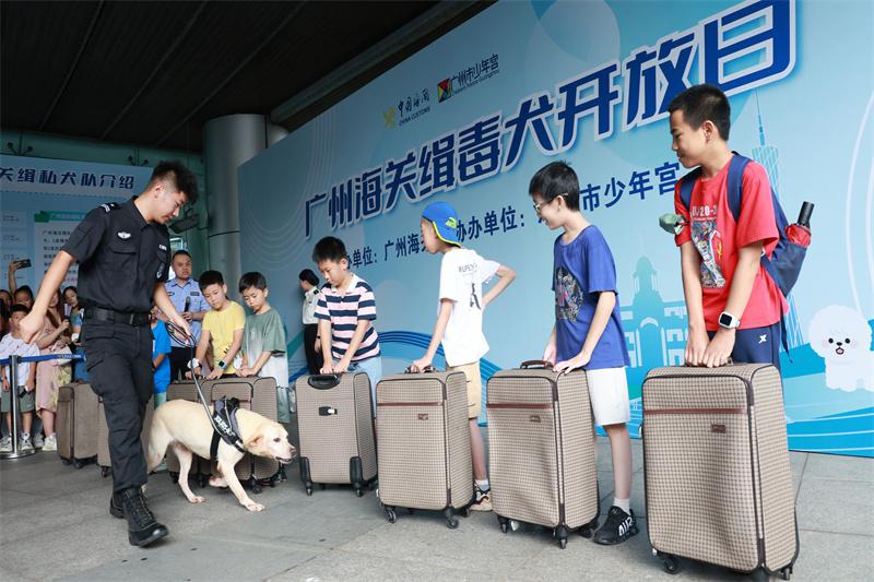 6月22日,廣州海關(guān)聯(lián)合廣州市少年宮舉辦“緝毒犬開放日”活動,通過寓教于樂的禁毒宣傳活動,讓廣大市民朋友在趣味游戲中了解海關(guān)打擊毒品走私工作成效、禁毒常識,并與海關(guān)緝毒犬進行現(xiàn)場親密互動,活動吸引了400余名市民參加。
