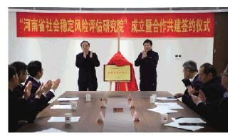 近日,河南省社會穩(wěn)定風險評估研究院成立暨合作共建簽約儀式在河南財經(jīng)政法大學舉行。河南省社會穩(wěn)定風險評估研究院旨在為河南省社會公共治理提供專業(yè)的理論研究和智庫服務,維護國家政治安全、社會穩(wěn)定,防范化解重大矛盾風險,提升風險評估工作科學水平,為新形勢下建設更高水平的平安河南提供有力保障。