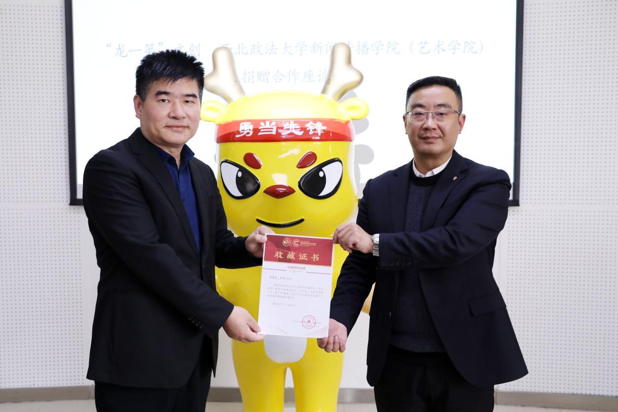 3月29日,深圳文創(chuàng)品牌“龍一第”向西北政法大學新聞傳播學院(藝術(shù)學院)捐贈IP雕塑儀式在長安校區(qū)舉行。