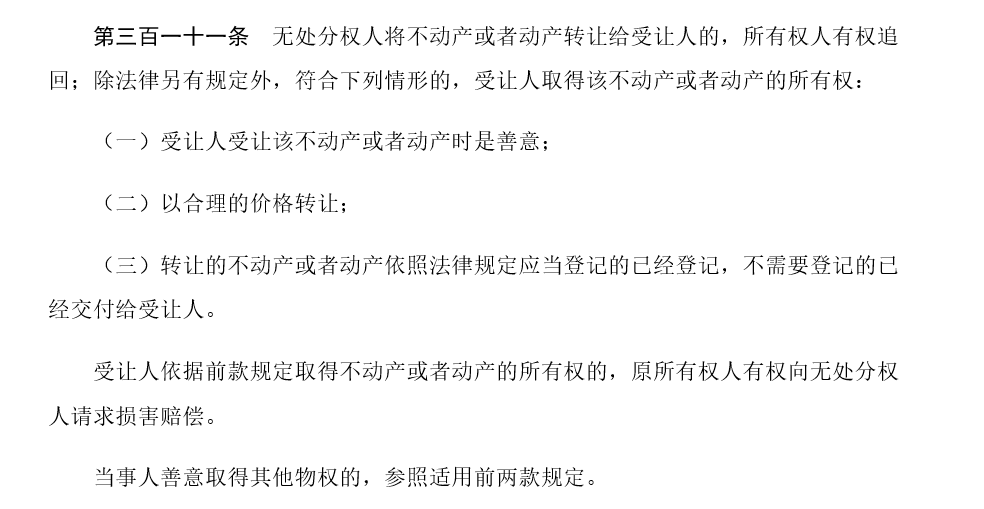 善意取得是所有權(quán)取得的一種特別方式。民法典第三百一十一條對(duì)善意取得制度作出了專門規(guī)定。
