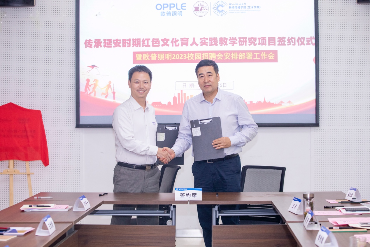 6月5日下午,“傳承延安時期紅色文化育人實踐教學(xué)研究項目簽約儀式暨陜公后人復(fù)唱《黃河大合唱》第二課堂實踐教學(xué)活動”啟動儀式在西北政法大學(xué)何微紀念館舉行。西北政法大學(xué)新聞傳播學(xué)院(藝術(shù)學(xué)院)與歐普照明股份有限公司就校企合作打造紅色文化知識體系和育人體系的合作框架與具體事項達成共識,并決定啟動“陜公后人復(fù)唱《黃河大合唱》”實踐教學(xué)活動的籌備工作,探索“文化育人+藝術(shù)育人+實踐育人”三位一體的思政教育新模式。
