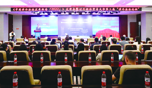 日前,對外經(jīng)濟貿(mào)易大學涉外法治研究院和法學院共同舉辦的《中國涉外法治發(fā)展報告(2022)》發(fā)布會暨對外經(jīng)濟貿(mào)易大學第三屆“涉外法治論壇”舉行。本年度報告共包含11個專題,從參與全球治理、立法、執(zhí)法、司法、法律服務(wù)和法學研究等方面展現(xiàn)了我國涉外法治發(fā)展的成績、問題和建議。來自政府部門、實務(wù)機構(gòu)和校內(nèi)外專家學者代表出席本次發(fā)布會。