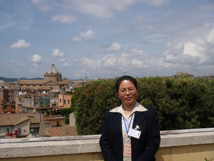 20世紀(jì)90年代初,中意兩國之間打開了法學(xué)科學(xué)術(shù)交流的大門,其中一項主要合作就是派青年學(xué)者赴意大利研學(xué),培養(yǎng)羅馬法專業(yè)人才。中國政法大學(xué)作為培養(yǎng)中國法律人才的主陣地,根據(jù)1989年春季與意大利國家科研委員會和羅馬第二大學(xué)簽訂的協(xié)議,于1990-1995年公派赴意研學(xué)羅馬法的四名青年學(xué)者,這是我國第一批派到意大利專門學(xué)習(xí)羅馬法的青年學(xué)者。費(fèi)安玲有幸成為了其中之一。1993年1月至1994年7月,費(fèi)安玲在羅馬大學(xué)法學(xué)院系統(tǒng)研習(xí)羅馬法和意大利私法,眼界大開,對于近現(xiàn)代法律的緣起、體系和發(fā)展有了更深刻的認(rèn)識。