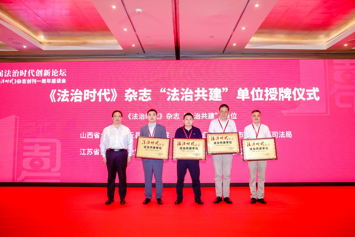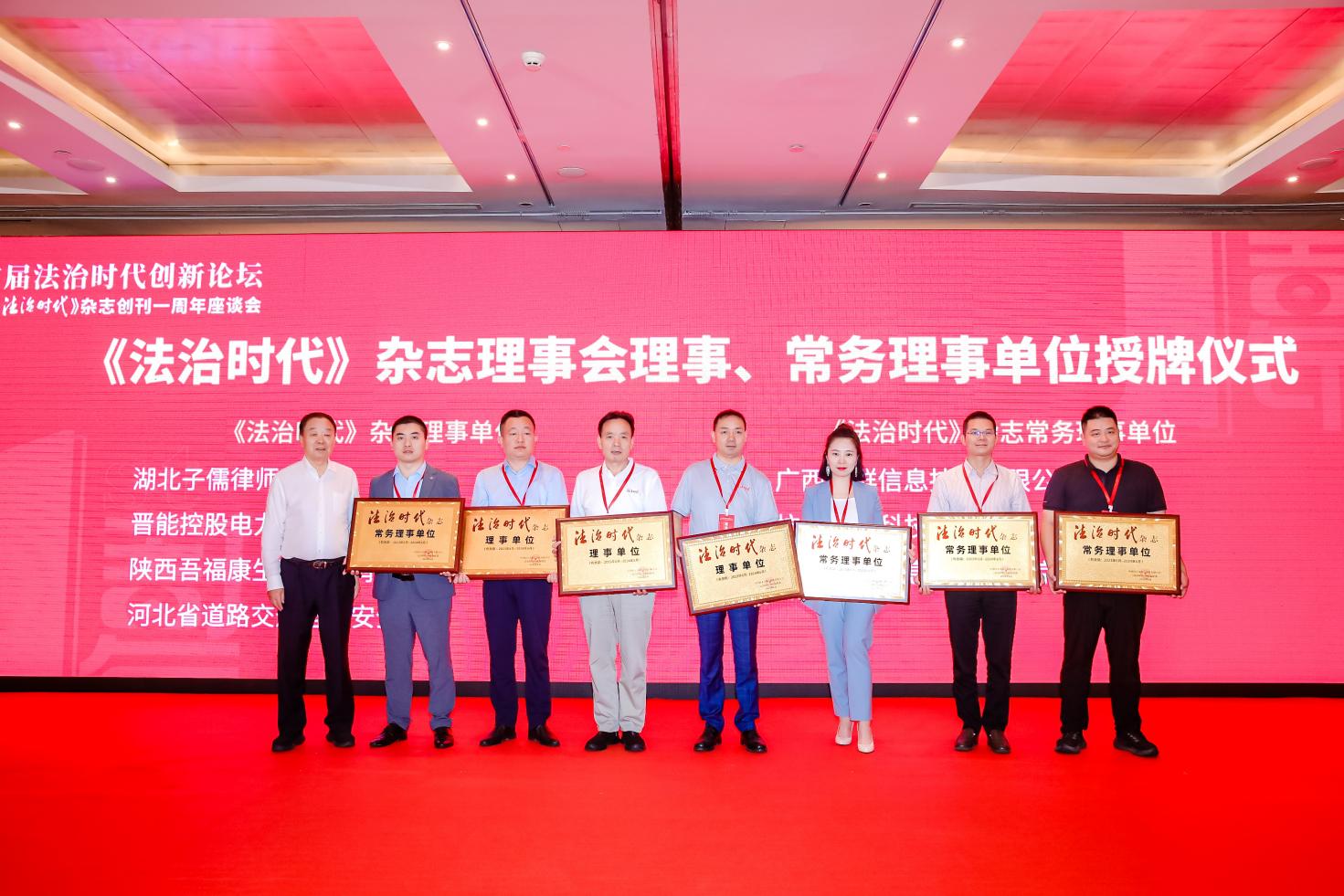 主旨演講環(huán)節(jié)結(jié)束后,進(jìn)行了《法治時代》雜志理事會理事單位、常務(wù)理事單位、《法治時代》雜志“法治共建”單位聘任儀式。第十二屆全國人大法律委主任委員喬曉陽、中國出版集團有限公司總經(jīng)理、黨組副書記常勃分別為理事單位、常務(wù)理事單位和“法治共建”單位授牌。