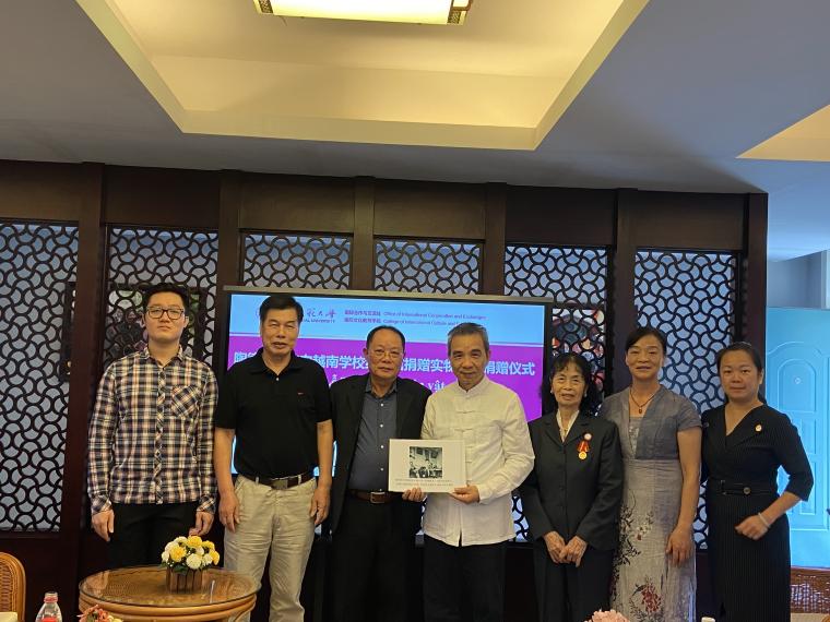 (圖為:陶德清先生向越南學(xué)校紀(jì)念館贈(zèng)送父親當(dāng)年在桂林工作照片)
