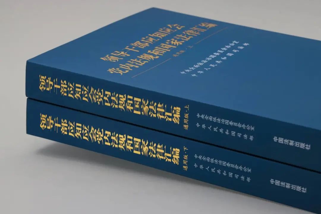 中央依法治國辦、司法部編輯的《領(lǐng)導(dǎo)干部應(yīng)知應(yīng)會黨內(nèi)法規(guī)和國家法律匯編 通用版》一書,近日由中國法制出版社公開出版發(fā)行。