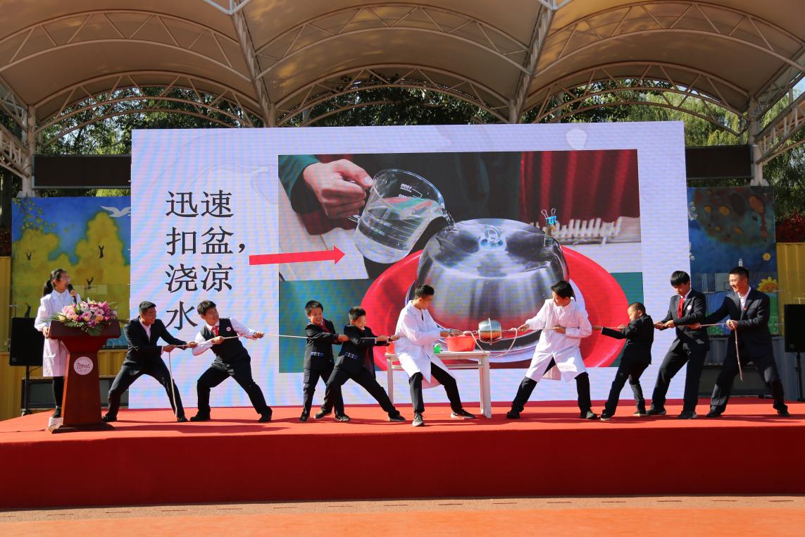 這場(chǎng)嘉年華啟動(dòng)儀式上,中小學(xué)科技課程、科技戲劇、人工智能展演成為了焦點(diǎn),從奮力沖上蒼穹的“水火箭”,到馬德堡半球?qū)嶒?yàn)的再現(xiàn),再到機(jī)器人的舞蹈表演,每一個(gè)科學(xué)實(shí)驗(yàn)都在孩子們歡喜的尖叫聲中揭開神秘面紗。參加科學(xué)實(shí)驗(yàn)展演的孩子們個(gè)個(gè)眼光中充滿了自信和希望,沉著冷靜、默契配合,詮釋科學(xué)實(shí)驗(yàn)、科學(xué)反應(yīng)、科學(xué)原理或科研創(chuàng)新成果及技術(shù)。