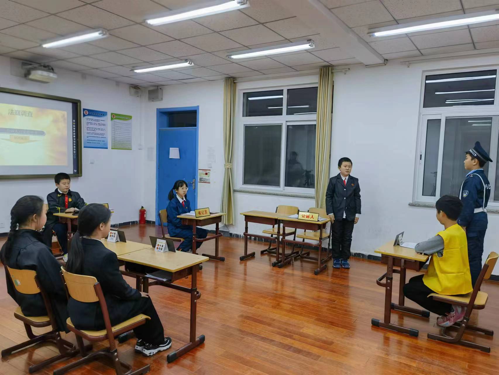 高家園小學(xué)學(xué)生以情景表演的形式對一起“網(wǎng)絡(luò)詐騙案”進(jìn)行“審理”。