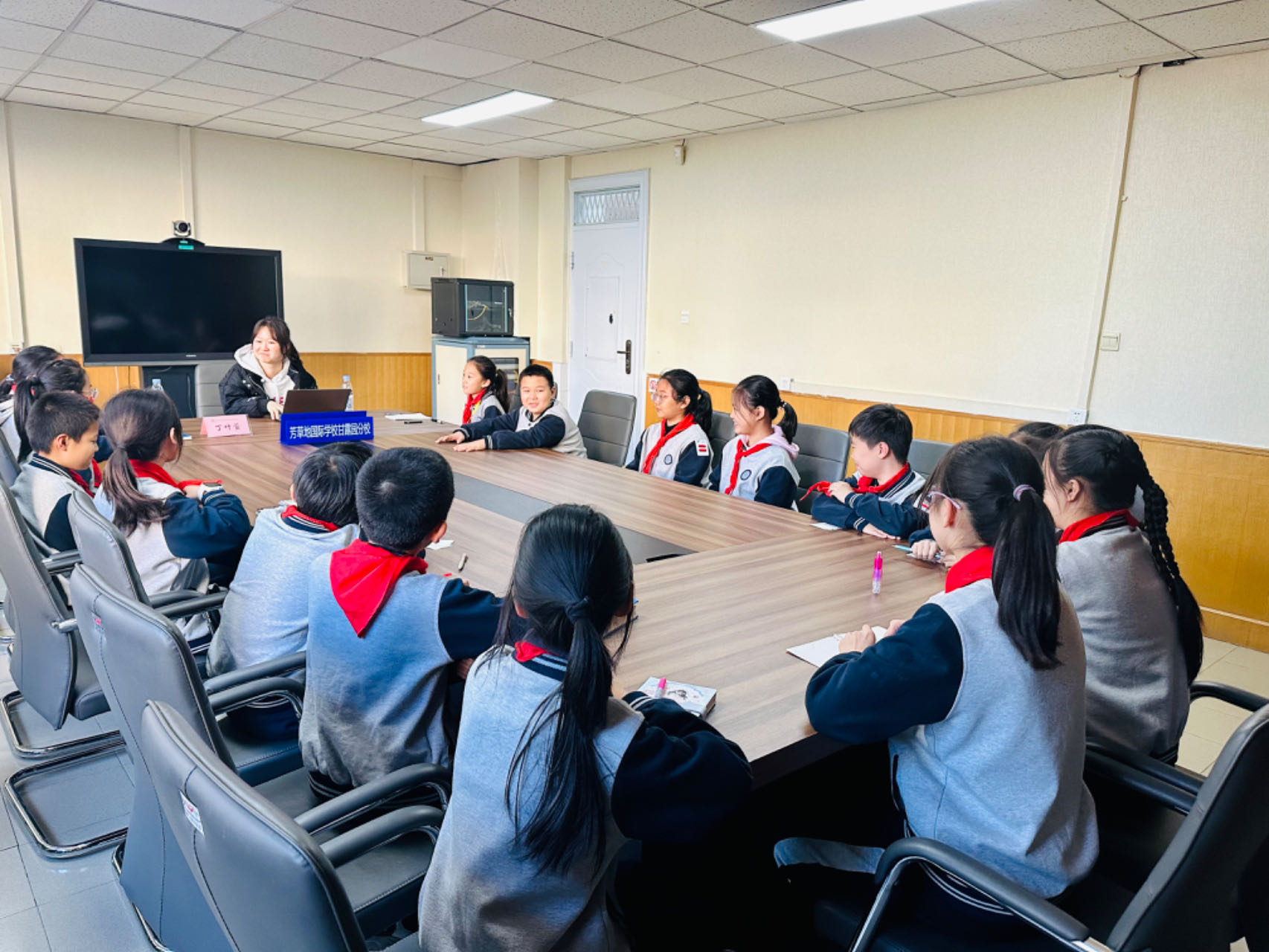 北京大學(xué)法學(xué)院丁葉萱與北京市朝陽區(qū)芳草地國際學(xué)校甘露園分校小學(xué)部甘露校區(qū)學(xué)生進(jìn)行法律知識座談會。