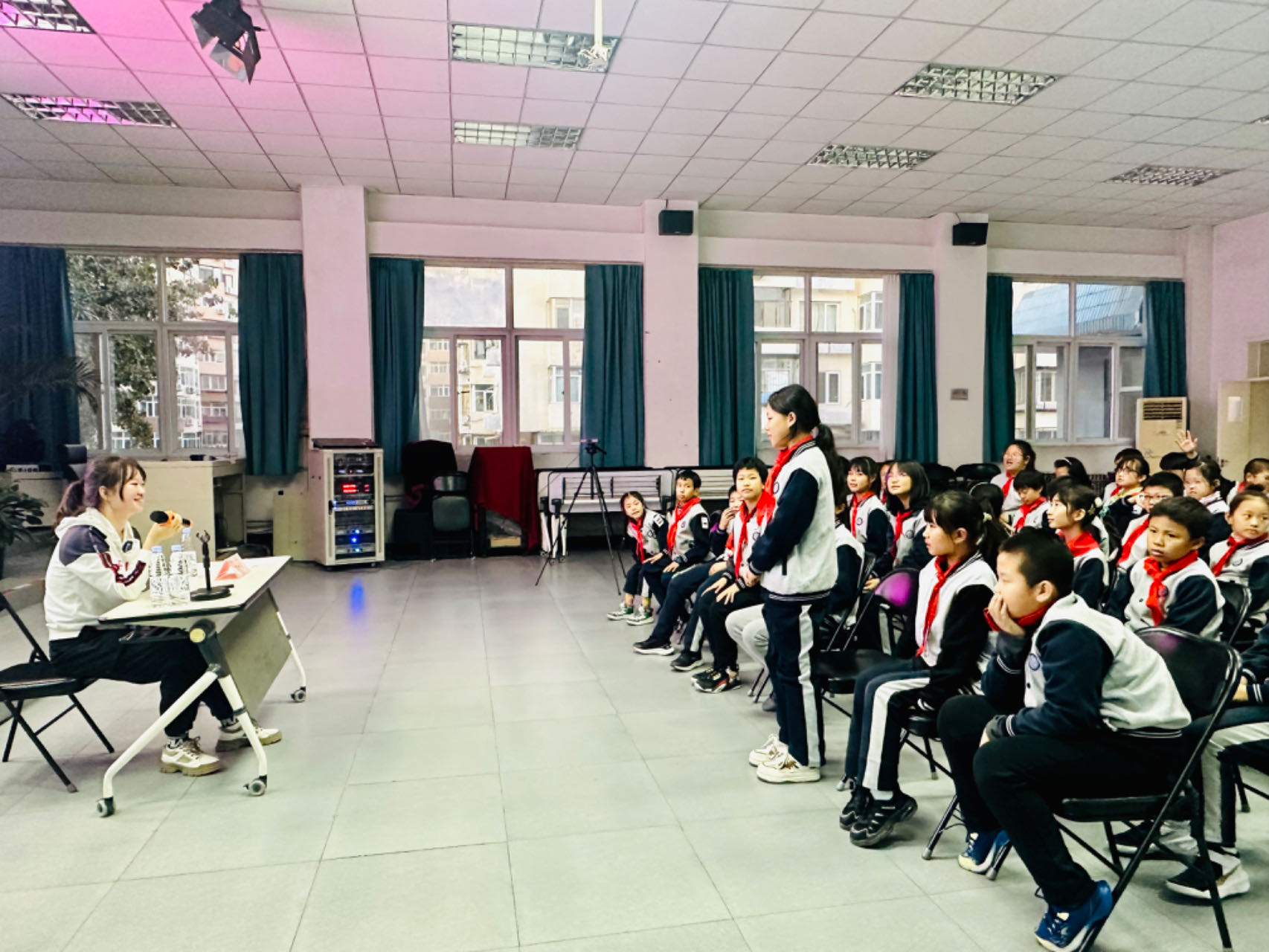 “憲法伴成長 家校社共振”主題活動(dòng)上,北京市朝陽區(qū)將臺路小學(xué)張夢伊老師正在為學(xué)生們上“從憲法日說起”一課,帶領(lǐng)學(xué)生們以憲法日為主題開展口語交際訓(xùn)練,提升學(xué)生對憲法日的認(rèn)識和對憲法重要性的理解。
