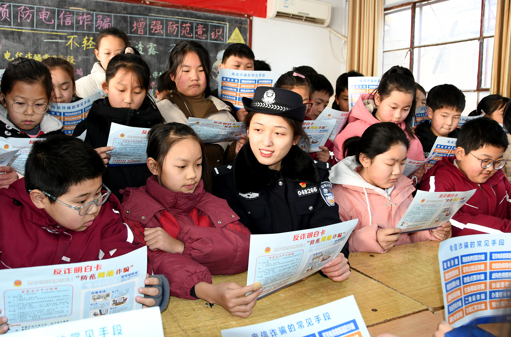 圖為1月22日,民警在實驗小學(xué)為同學(xué)們講解防范電信詐騙知識。