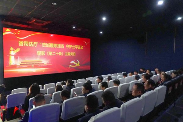 為弘揚(yáng)法治精神,傳遞法治理念,貫徹落實(shí)全省“三抓三促”行動(dòng)推進(jìn)會(huì)議精神,激發(fā)忠誠履職擔(dān)當(dāng)?shù)膬?nèi)在動(dòng)力,2月21日下午,甘肅省司法廳組織開展《第二十條》集體觀影主題黨日活動(dòng)。