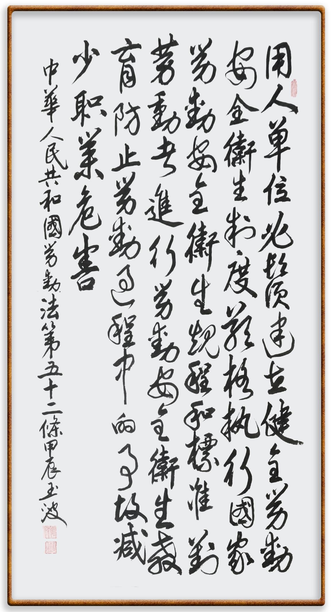 法律,是勞動者奮斗前行的后盾。在“五一”國際勞動節(jié)這個崇尚勞動、贊美勞動者的日子里,“書·法”系列活動邀請書法家及書法愛好者們將筆端對準(zhǔn)《中華人民共和國勞動法》,共同書寫新時代勞動者新的榮光!