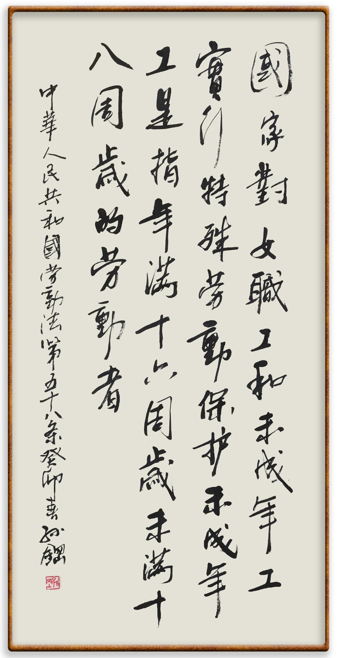 法律,是勞動(dòng)者奮斗前行的后盾。在“五一”國際勞動(dòng)節(jié)這個(gè)崇尚勞動(dòng)、贊美勞動(dòng)者的日子里,“書·法”系列活動(dòng)邀請(qǐng)書法家及書法愛好者們將筆端對(duì)準(zhǔn)《中華人民共和國勞動(dòng)法》,共同書寫新時(shí)代勞動(dòng)者新的榮光!