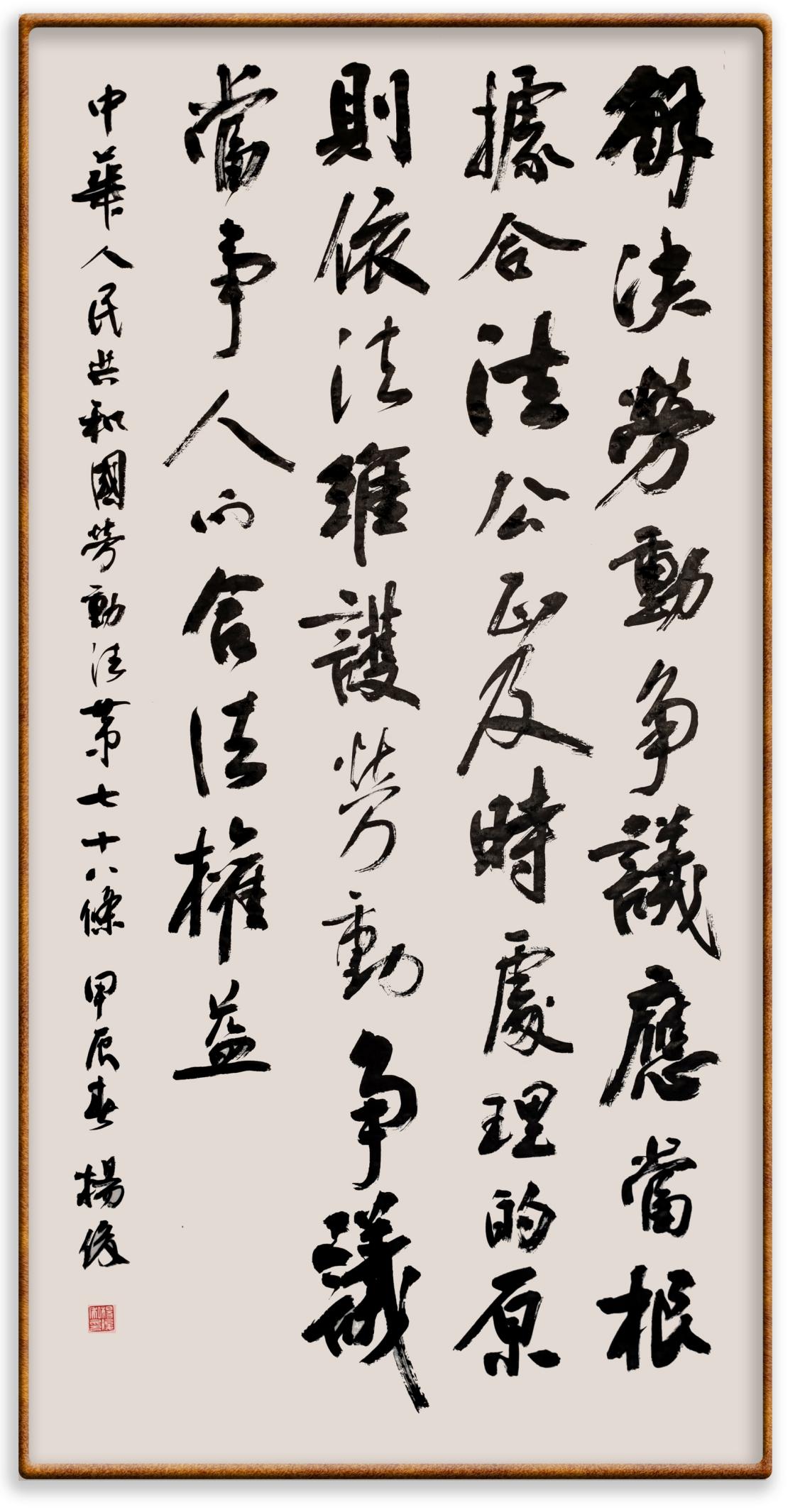 法律,是勞動者奮斗前行的后盾。在“五一”國際勞動節(jié)這個崇尚勞動、贊美勞動者的日子里,“書·法”系列活動邀請書法家及書法愛好者們將筆端對準(zhǔn)《中華人民共和國勞動法》,共同書寫新時代勞動者新的榮光!