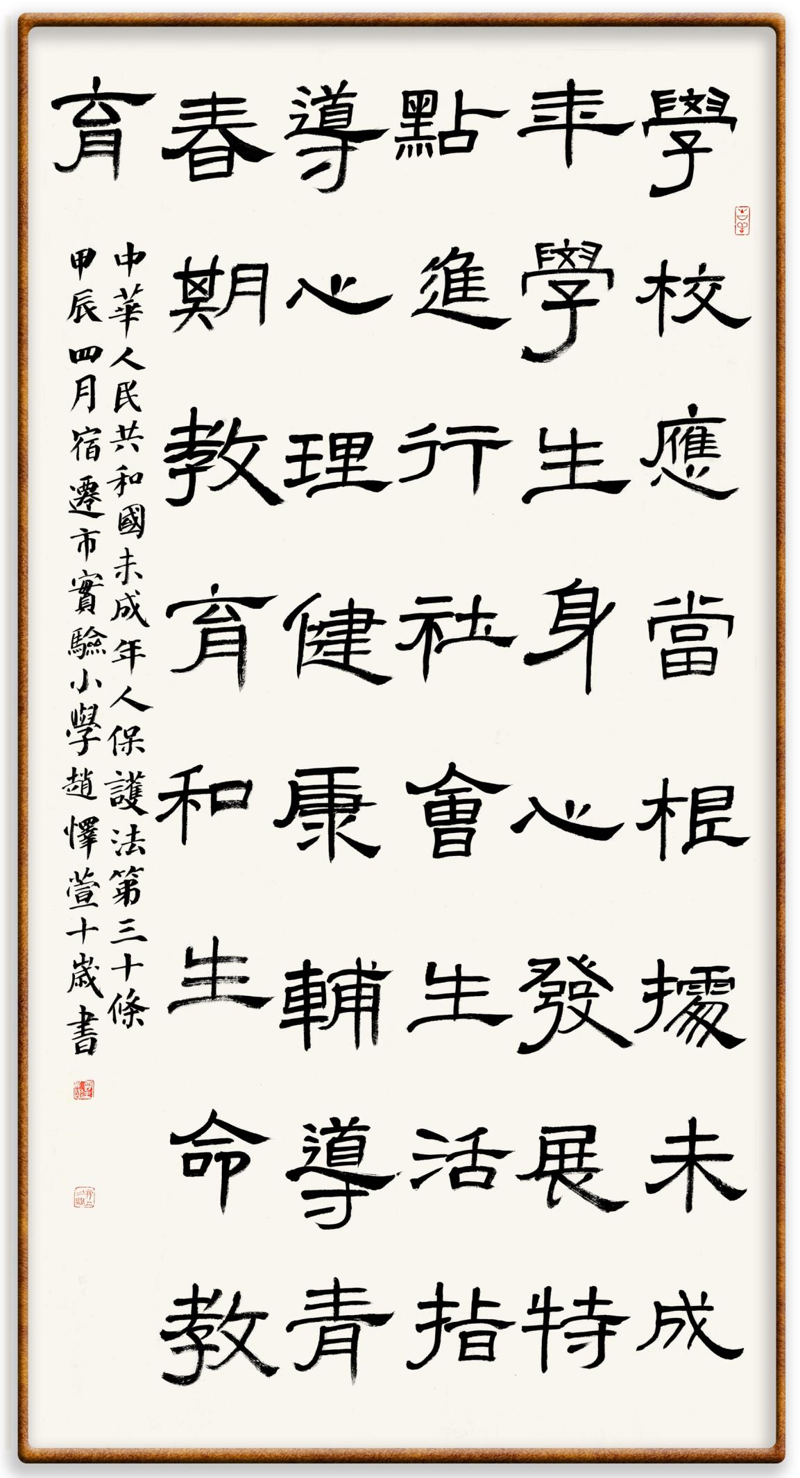 “六一”國際兒童節(jié)來臨之際,法制日?qǐng)?bào)社聯(lián)合(全國)教育書畫協(xié)會(huì)基礎(chǔ)書法教育分會(huì),推出“‘書·法’系列活動(dòng)之書寫《中華人民共和國未成年人保護(hù)法》活動(dòng)”,邀請(qǐng)小朋友書寫部分法條,讓孩子們?cè)跐鉂獾墓?jié)日氛圍中感受傳統(tǒng)文化的獨(dú)特魅力。