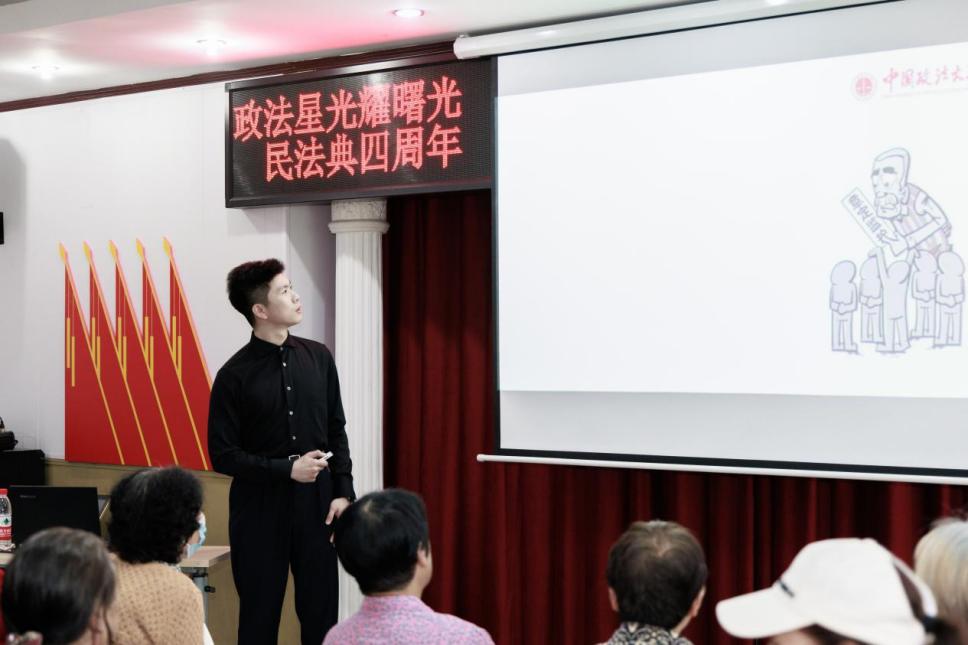 法大民商經(jīng)濟法學(xué)院民商法學(xué)專業(yè)碩士研究生顏鄭濤同學(xué)以“民法典中的老年人權(quán)益保護”為主題,為社區(qū)居民代表講述了民法典中與老年人切身利益密切相關(guān)的內(nèi)容。