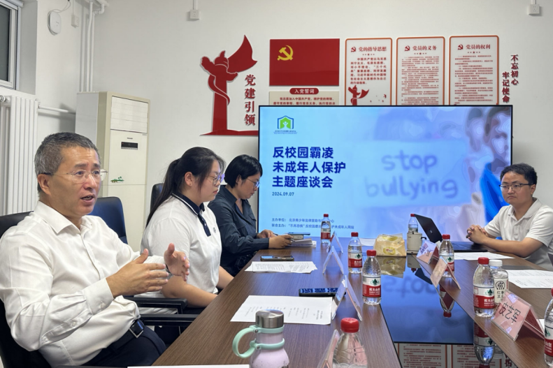 9月7日,以“反校園霸凌 未成年人保護(hù)”為主題的座談會在北京青少年法律援助與研究中心舉辦。法學(xué)專家、法律援助律師、心理專家、學(xué)生與家長代表們圍繞校園霸凌行為的危害性、法律救濟(jì)的理論與實(shí)踐,深入交流研討,集實(shí)招、謀良策,引導(dǎo)社會各界共同守護(hù)青春校園與未成年人健康成長。