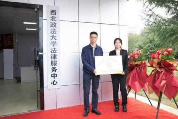 開幕式后,趙全宇、徐征、趙作明共同為西北政法大學(xué)法律服務(wù)中心新辦公場所揭牌。西安市法律援助中心黨總支副書記李鵬為“西安市法律援助中心西北政法大學(xué)法律援助工作站”授牌。