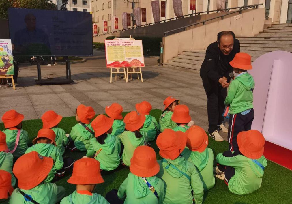 受廣西壯族自治區(qū)司法廳的邀請,中國法治出版社攜手凱叔講故事,在2024年廣西壯族自治區(qū)“12·4”國家憲法日暨憲法宣傳周活動主會場戶外——自治區(qū)博物館南廣場,舉辦了“當法律遇上故事”主題普法活動,共同關愛保護未成年人健康成長。