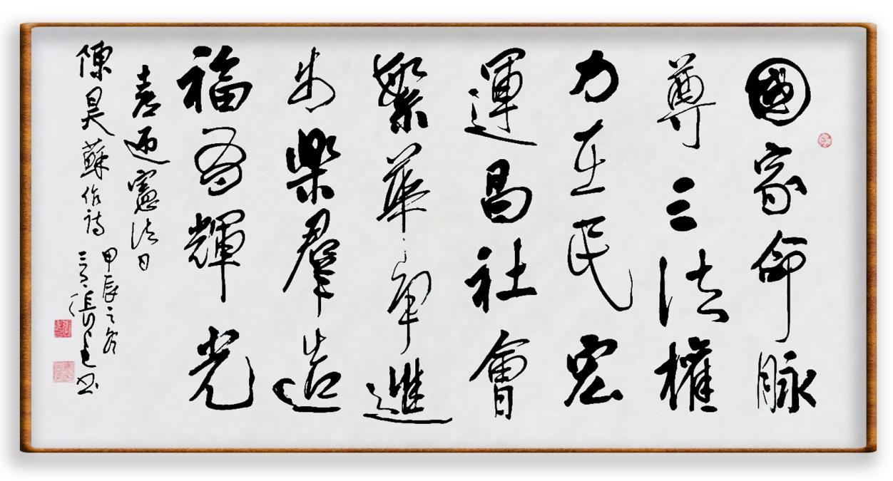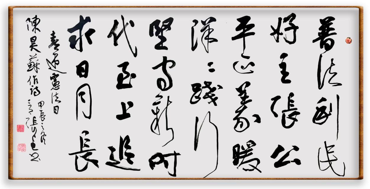 12月4日是第十一個(gè)國(guó)家憲法日。當(dāng)天,由法制日?qǐng)?bào)社、中國(guó)人民解放軍儀仗司禮大隊(duì)主辦的“‘書(shū)·法’系列活動(dòng)走進(jìn)中國(guó)人民解放軍儀仗司禮大隊(duì)暨‘書(shū)·法’系列叢書(shū)書(shū)法作品集首發(fā)活動(dòng)”在北京舉行?;顒?dòng)得到中國(guó)人民對(duì)外友好協(xié)會(huì)原會(huì)長(zhǎng)陳昊蘇的熱情支持,陳會(huì)長(zhǎng)以《喜迎憲法日》為題賦詩(shī)二首,并在詩(shī)的開(kāi)頭寫(xiě)到:“在國(guó)家憲法日舉行‘書(shū)·法’有關(guān)活動(dòng),意義十分重大。我謹(jǐn)寄上詩(shī)二首,表示熱烈祝賀。”