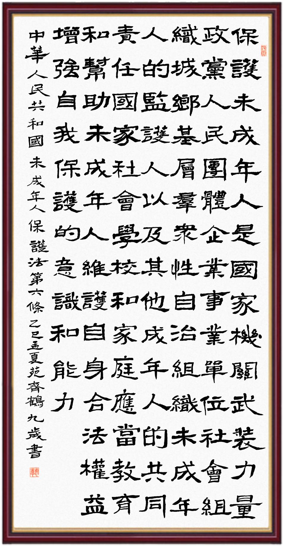 “六一”國際兒童節(jié)來臨之際,“書·法”活動邀請小朋友們書寫《中華人民共和國未成年人保護(hù)法》。一筆一畫寫未來,一字一句守純真!