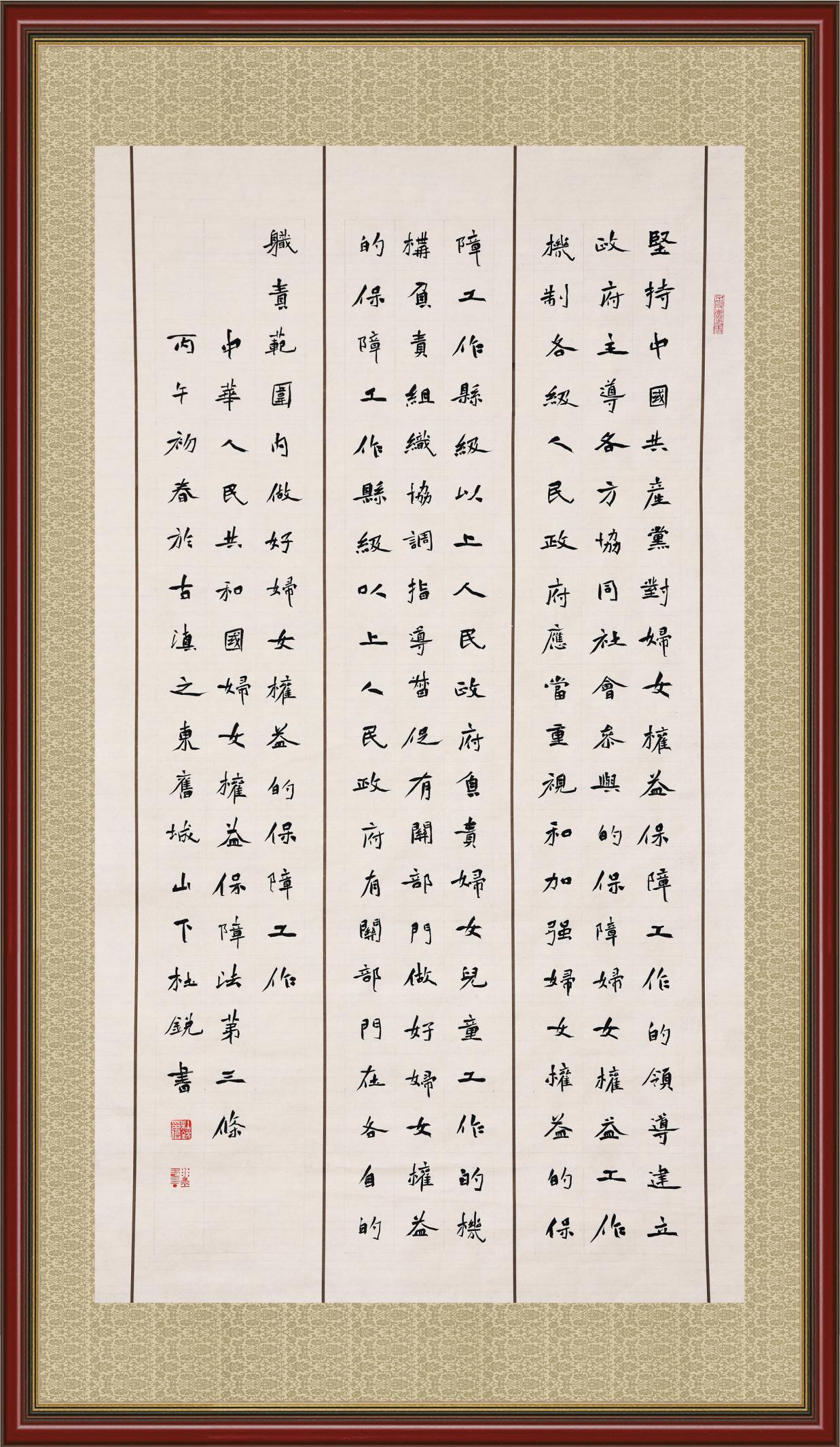 在“三八”國(guó)際婦女節(jié)之際,“書(shū)·法”系列活動(dòng)邀請(qǐng)書(shū)法家及書(shū)法愛(ài)好者們書(shū)寫(xiě)《中華人民共和國(guó)婦女權(quán)益保障法》,向每一位閃閃發(fā)光的女性同胞,致以最美好的祝福!