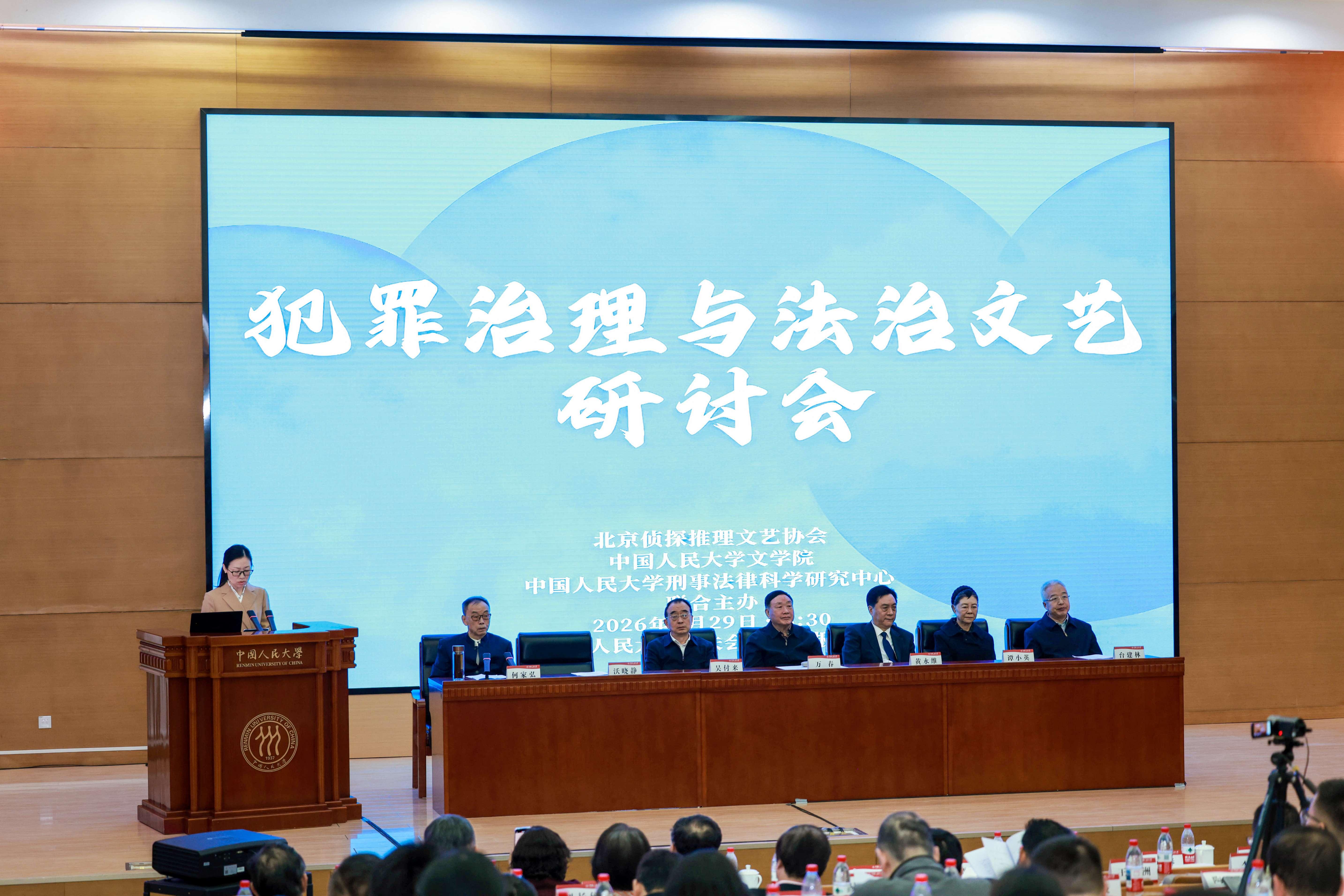3月29日,由中國人民大學刑事法律科學研究中心、北京偵探推理文藝協(xié)會(以下簡稱北京偵推協(xié))、中國人民大學文學院聯(lián)合主辦,中國法學會犯罪學研究會、中國社會主義文藝學會法治文藝委員會協(xié)辦的犯罪治理與法治文藝研討會在中國人民大學舉行。著名法學家、中國人民大學刑事法律科學研究中心研究員、北京偵推協(xié)時任會長何家弘主持開幕式。中國犯罪學學會會長萬春、中國人民大學原黨委副書記兼紀委書記吳付來、中國人民大學法學院黨委書記沃曉靜等嘉賓致辭。