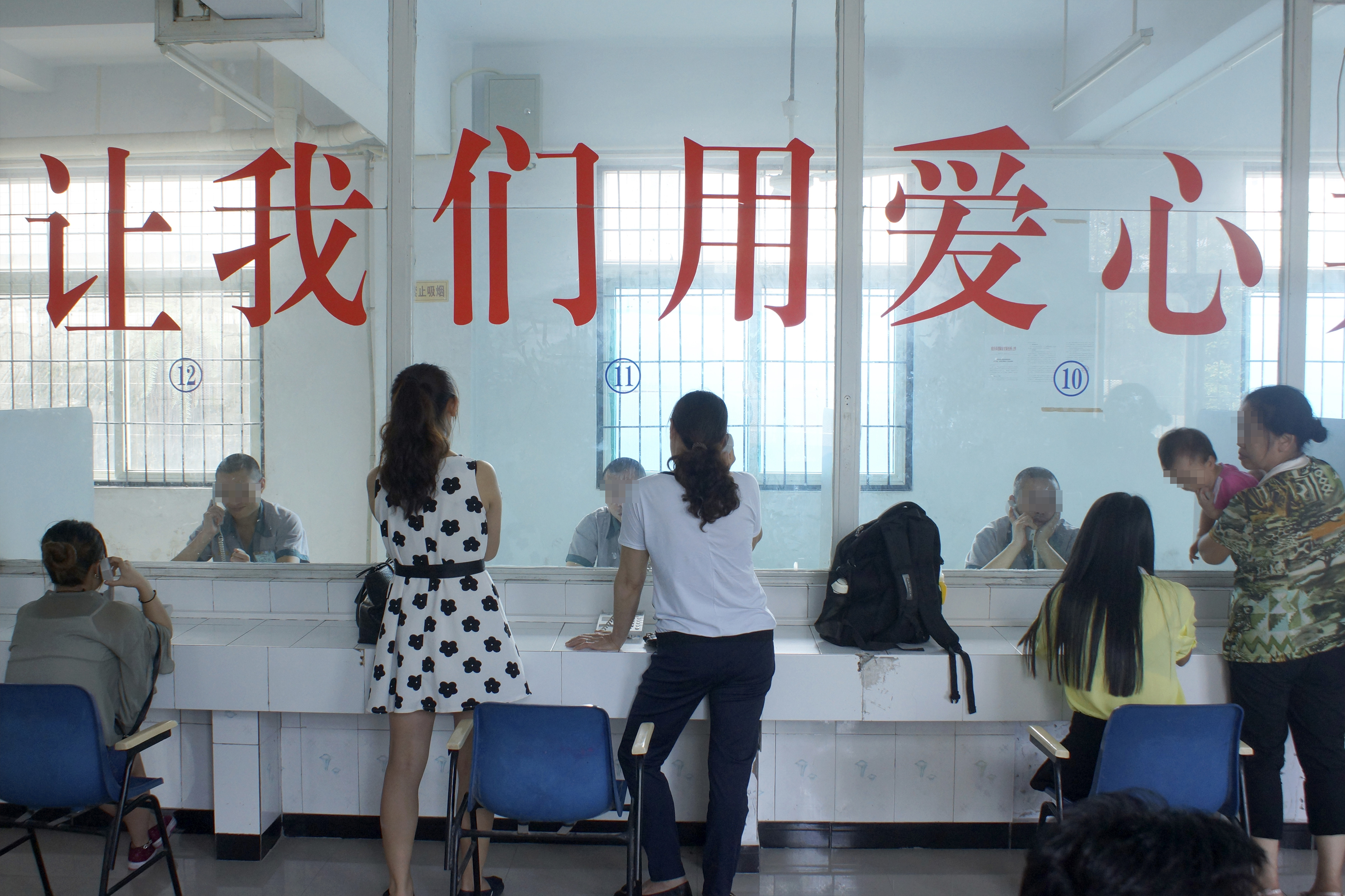 會見大廳,雖然隔著厚厚的玻璃窗,但通話器仍然傳遞著親人不離不棄的溫暖