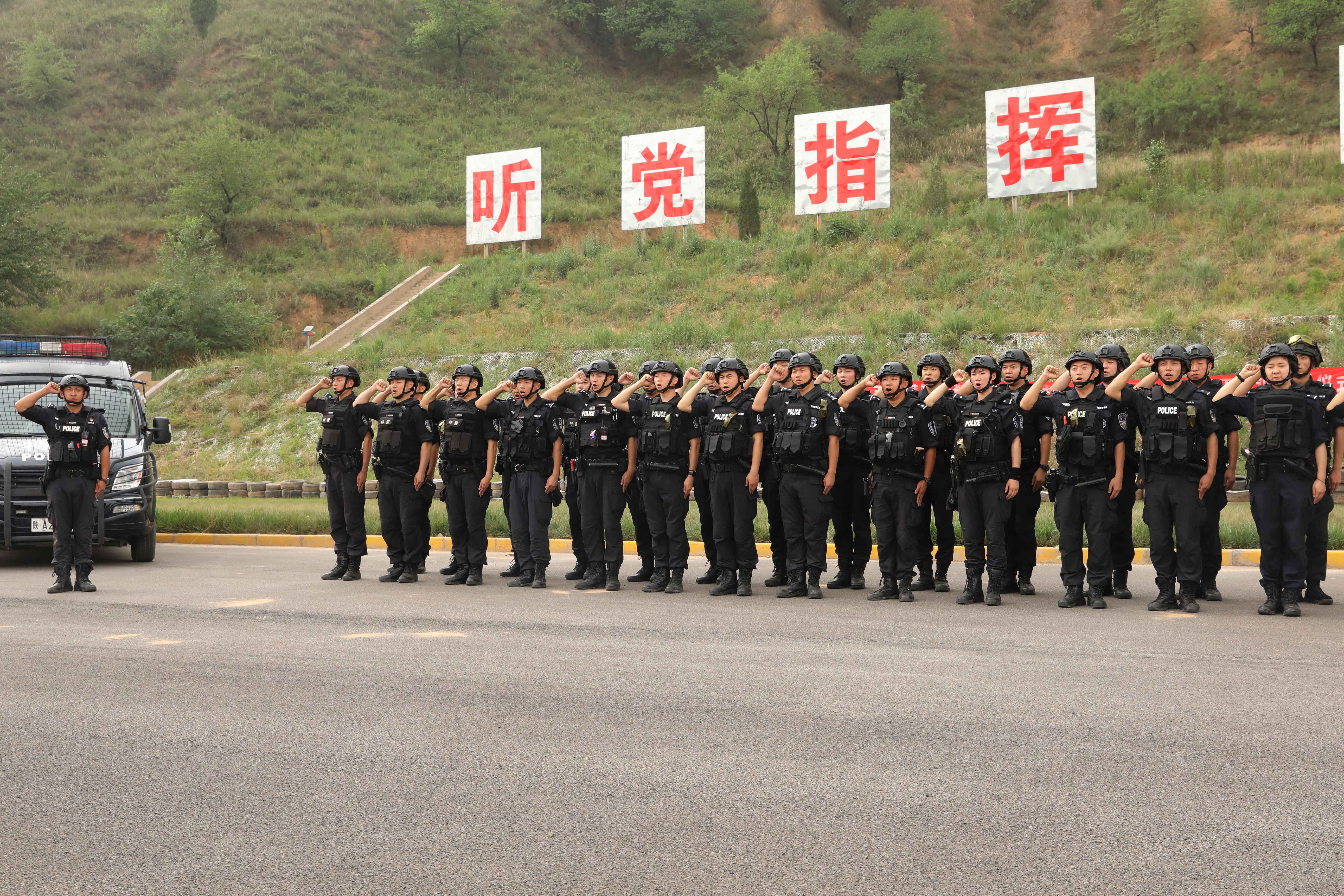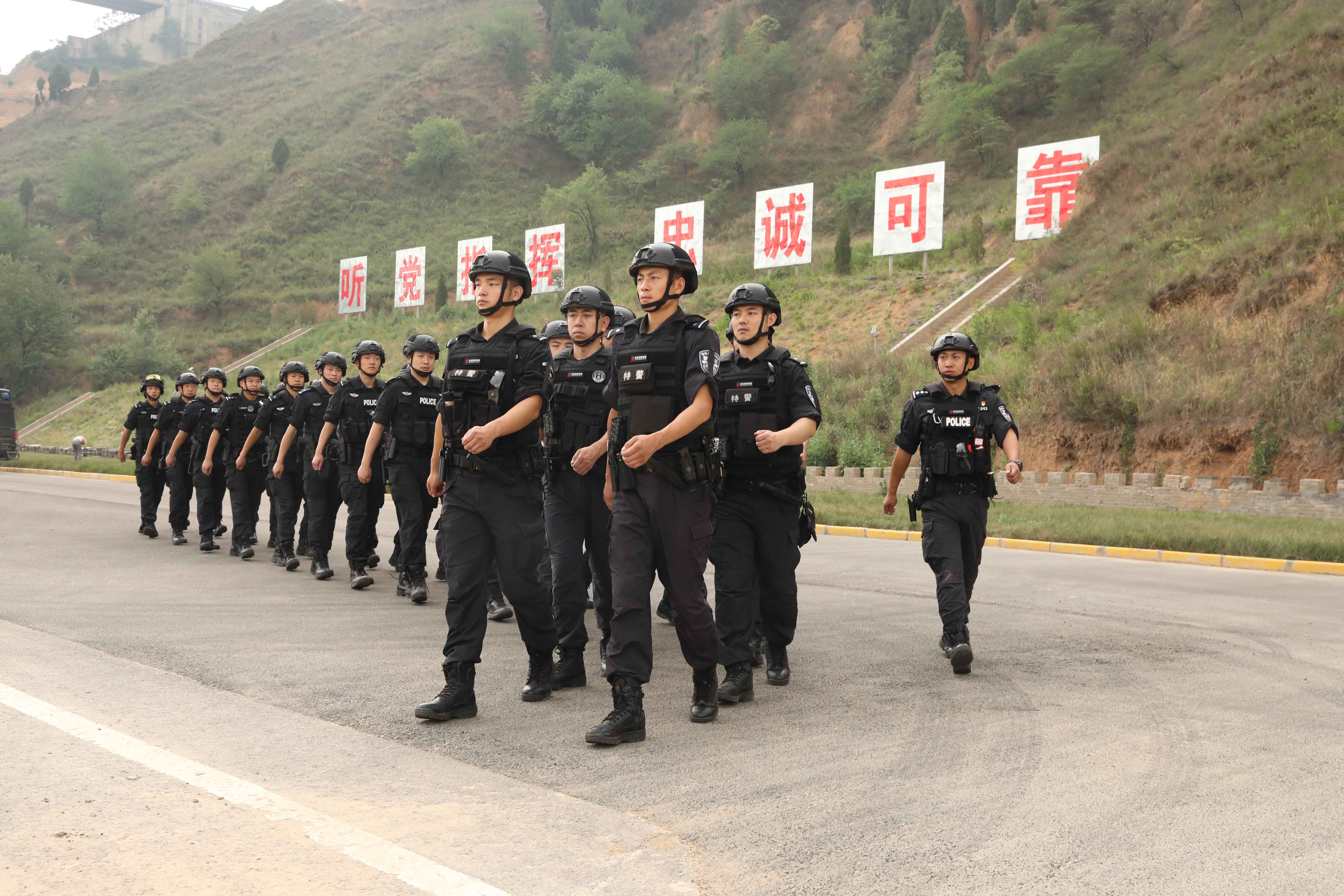 7月9日,陜西省渭南市,特警集訓(xùn)隊(duì)員準(zhǔn)備開展體能拉練。