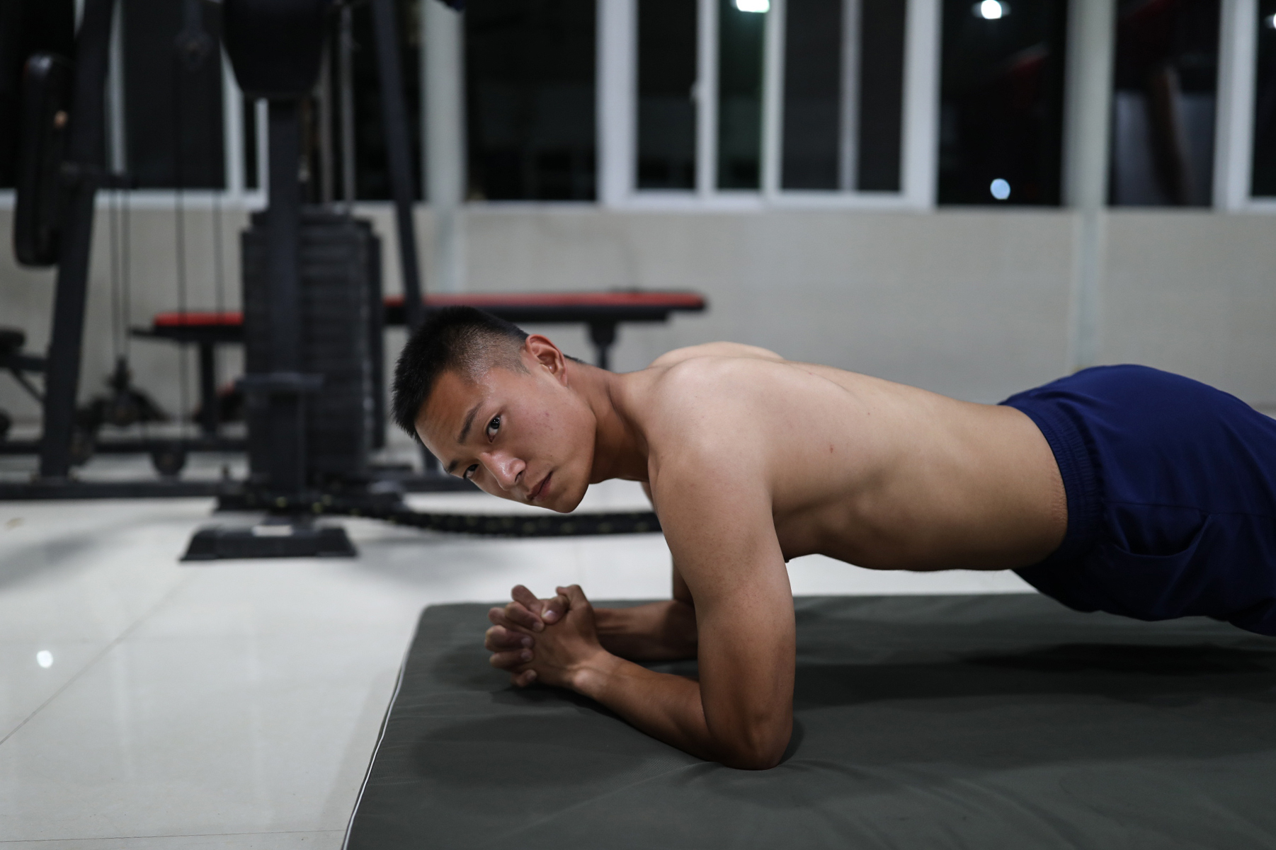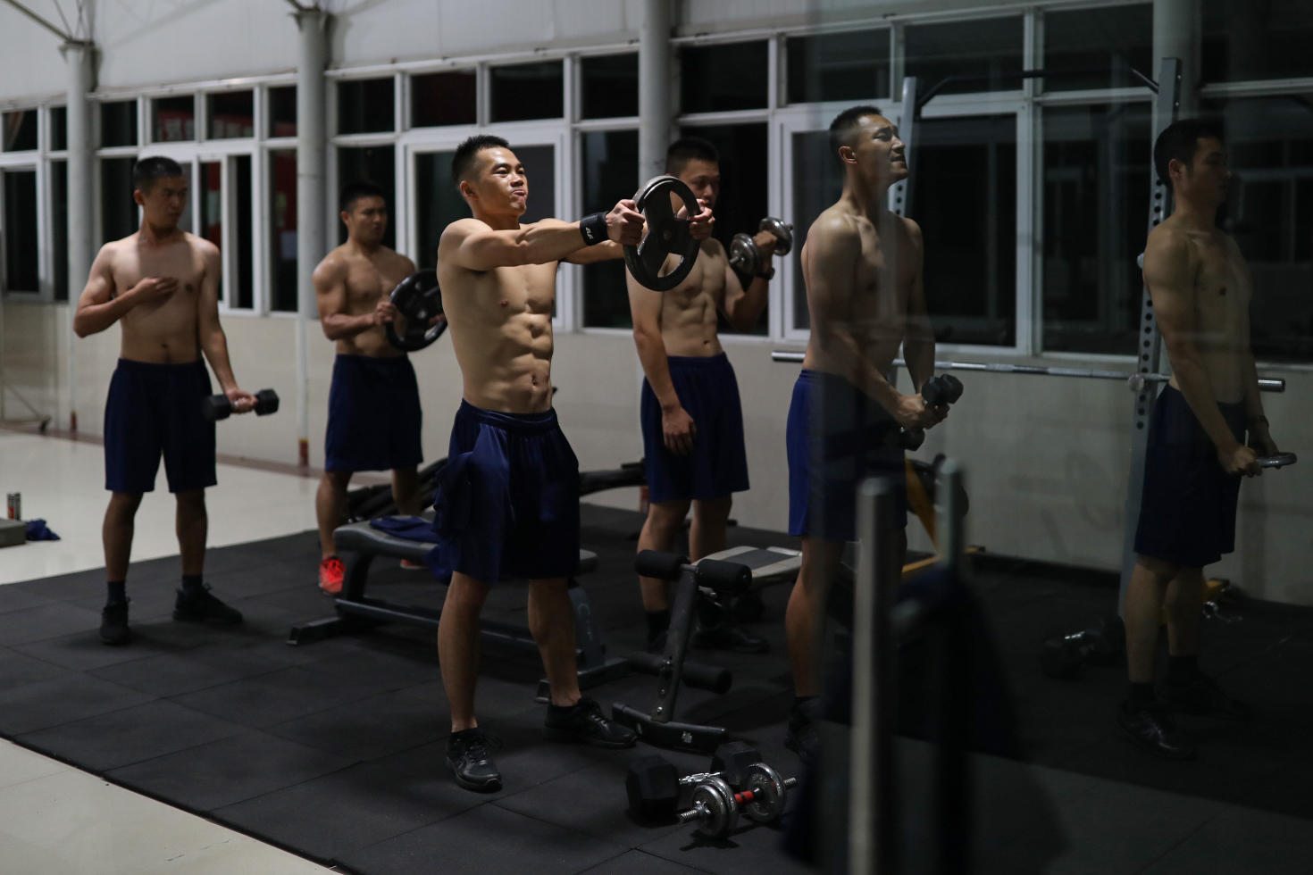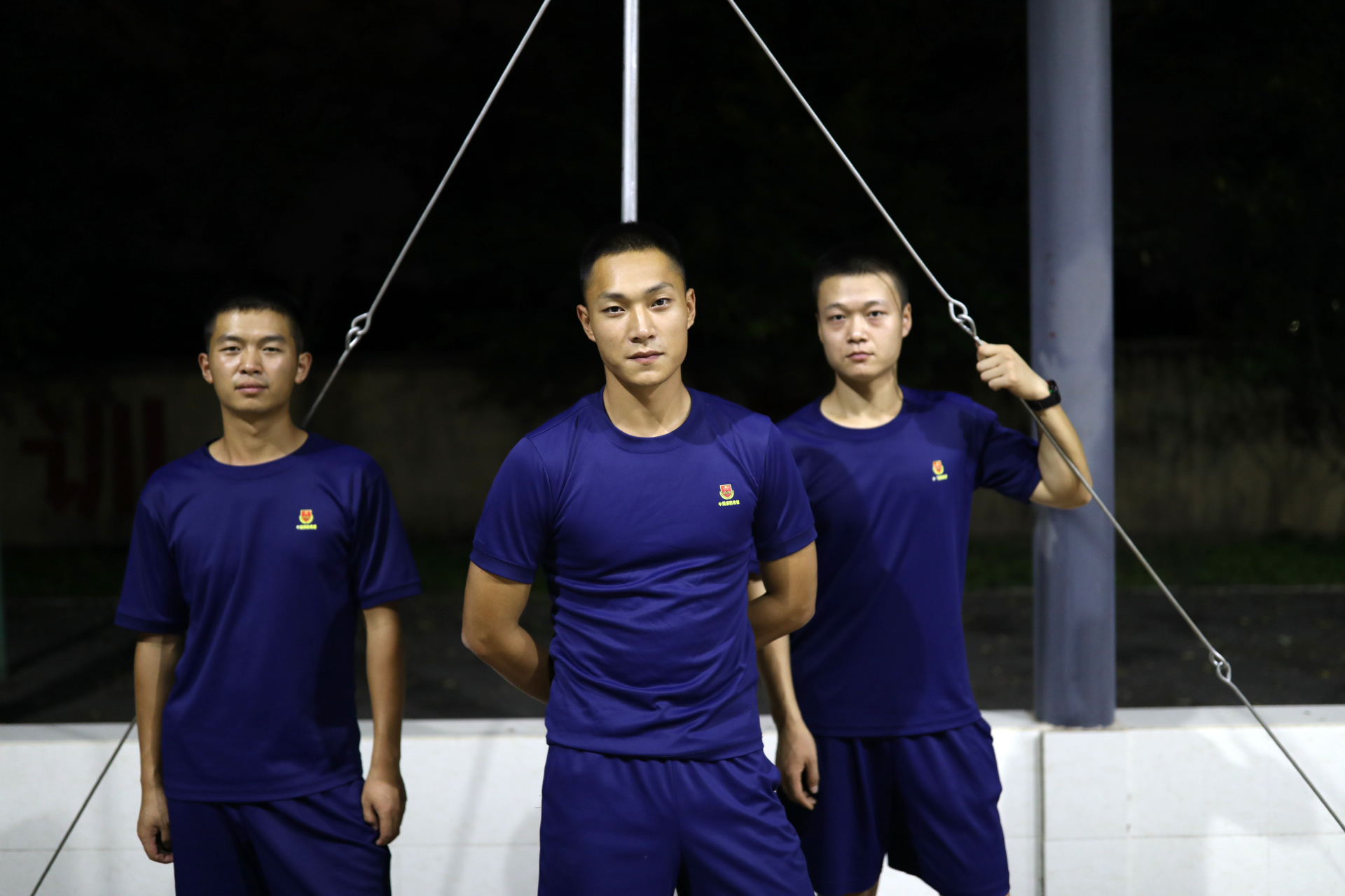 10月4日晚上,新消防員田祥像往常一樣來到訓(xùn)練大棚開始熱身,雖然國(guó)慶放假休息,但他所在的體能“小分隊(duì)”沒有一個(gè)人缺席。田祥很喜歡自己訓(xùn)練后大汗淋漓的模樣,他覺得這是一個(gè)男人最帥的時(shí)候。