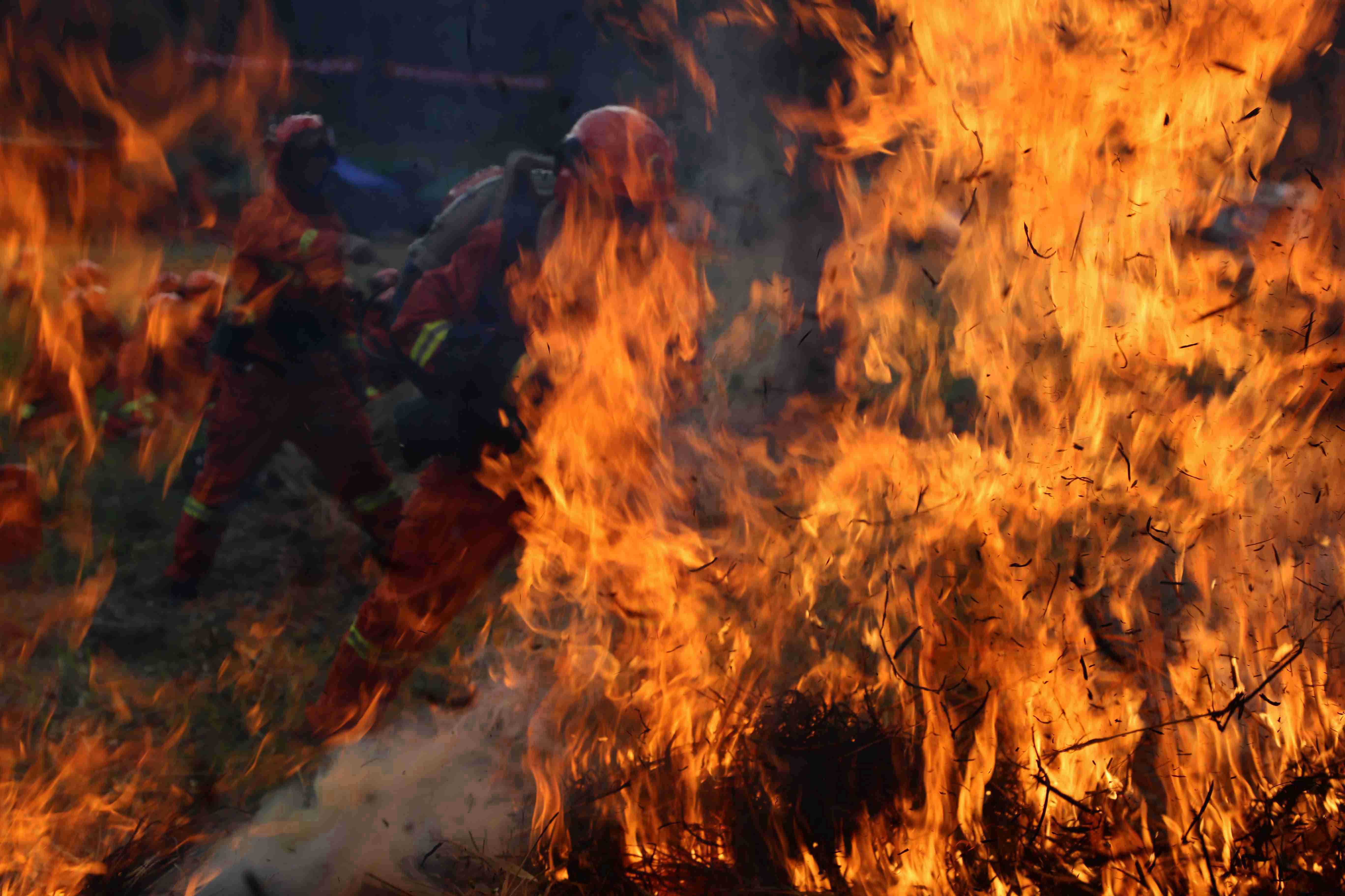 火燒了起來,加斯伍各看到中隊(duì)長(zhǎng)“開始”的手勢(shì),帶頭沖了上去,與灼熱的氣浪剛打了個(gè)照面,他本能地后退了幾步,但一想到老隊(duì)員都在身后看著,這個(gè)要強(qiáng)的彝族小伙不服輸?shù)哪枪蓜乓幌戮蜕蟻砹耍瑩]舞著手中的風(fēng)機(jī)與火魔斗了起來。