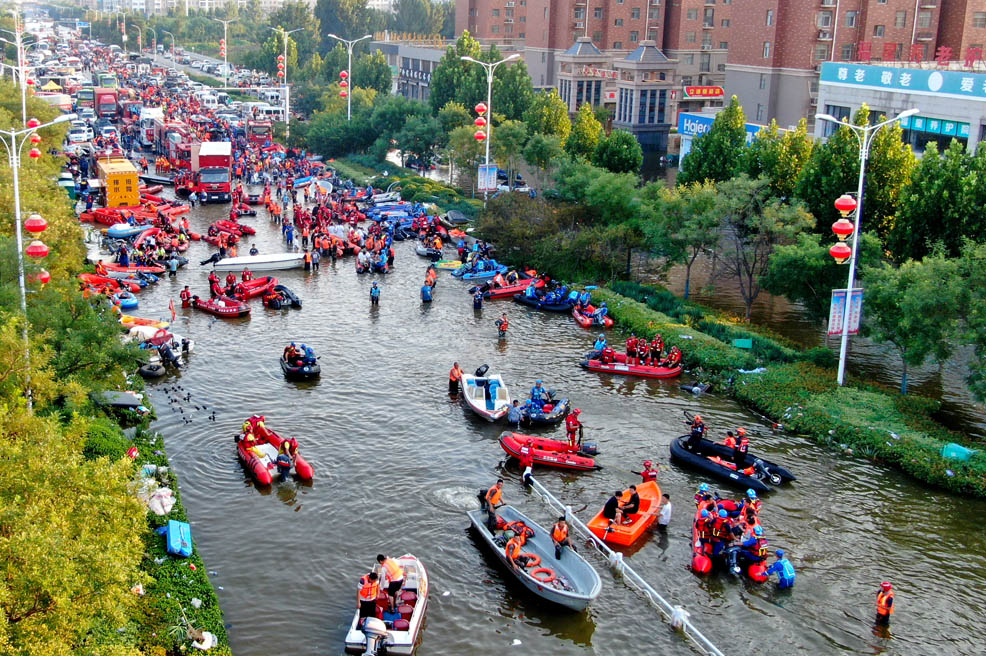 受連日強(qiáng)降雨影響,河南省衛(wèi)輝市新鄉(xiāng)醫(yī)學(xué)院第一附屬醫(yī)院被洪水圍困,院內(nèi)斷水?dāng)嚯?,千余名患者生命安全受到威脅。