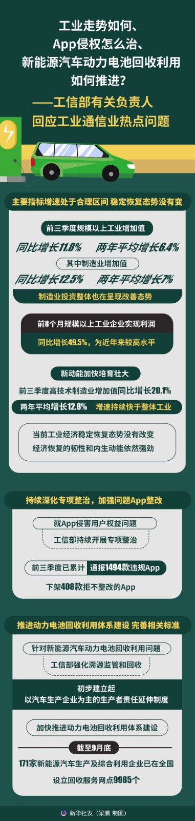 圖表:工業(yè)走勢如何、App侵權(quán)怎么治、新能源汽車動力電池回收利用如何推進?——工信部有關(guān)負責(zé)人回應(yīng)工業(yè)通信業(yè)熱點問題