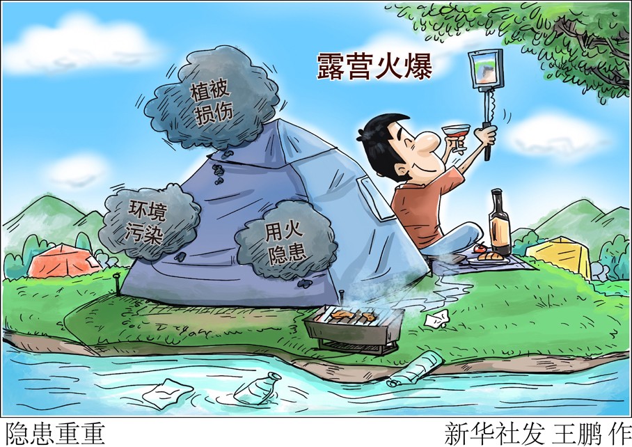 “新華視點(diǎn)”記者調(diào)查發(fā)現(xiàn),部分露營(yíng)者選擇不具備基礎(chǔ)條件的地點(diǎn)露營(yíng),由于缺乏專(zhuān)業(yè)的規(guī)范引導(dǎo),產(chǎn)生了植被損傷、環(huán)境污染、用火隱患等問(wèn)題。