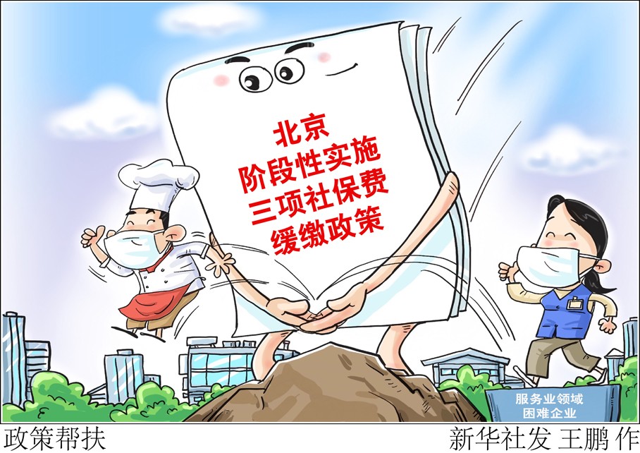 為幫助服務(wù)業(yè)領(lǐng)域困難企業(yè)渡過難關(guān)、恢復(fù)發(fā)展,北京市人力資源和社會保障局與國家稅務(wù)總局北京市稅務(wù)局、北京市財政局等九部門5月9日聯(lián)合發(fā)布通告,對在北京市參保繳費,屬于餐飲、零售、旅游、民航、公路鐵路運輸行業(yè)的企業(yè),階段性實施企業(yè)職工基本養(yǎng)老保險、失業(yè)保險、工傷保險三項社保費緩繳政策。