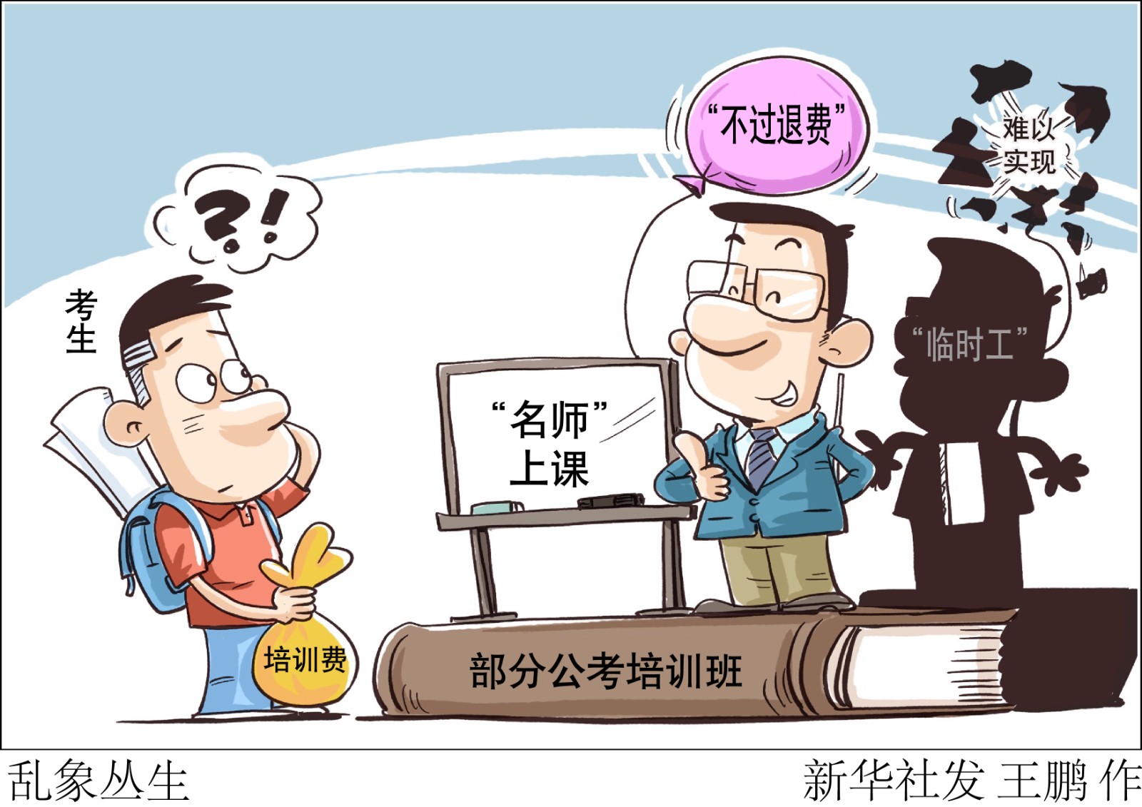 眼下,國家、地方公務(wù)員及選調(diào)生考試筆試大都已經(jīng)結(jié)束,一些地方面試因疫情推遲。為應(yīng)對公考筆試、面試,不少大學(xué)畢業(yè)生參加各種培訓(xùn)班?!靶氯A視點”記者調(diào)查發(fā)現(xiàn),有些培訓(xùn)機構(gòu)所謂的“名師”,竟是招聘的“臨時工”;所謂“不過退費”,有的難以實現(xiàn)。