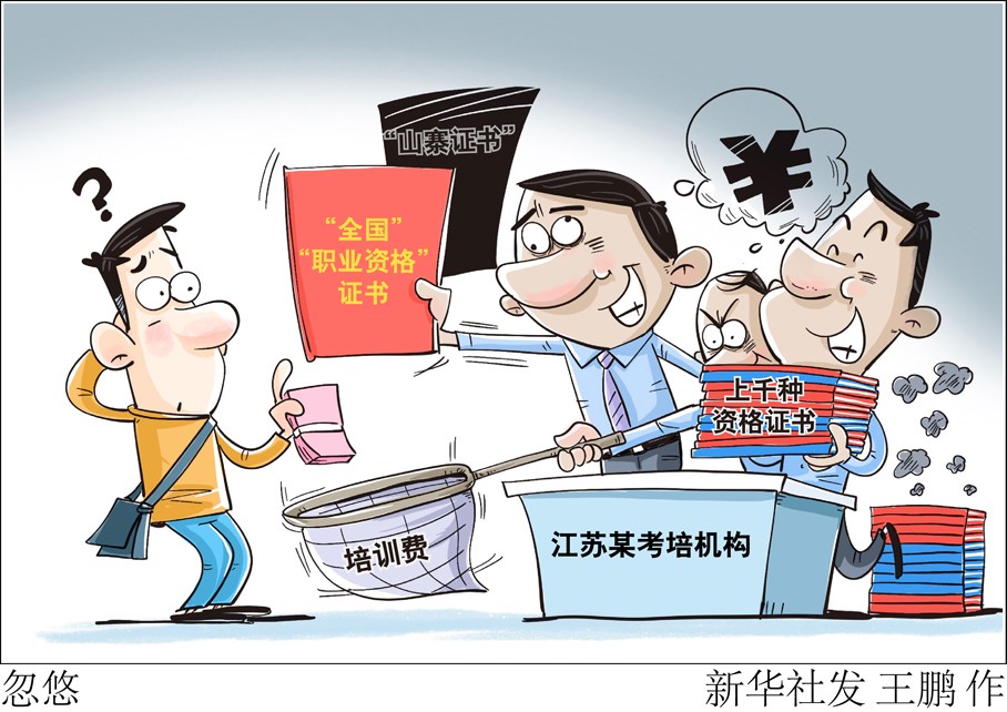 “新華視點”記者實地走訪發(fā)現(xiàn),該公司僅有2間辦公室,20多人辦公,卻開發(fā)了1730個職業(yè)資格考試項目,宣稱已發(fā)證128萬張。