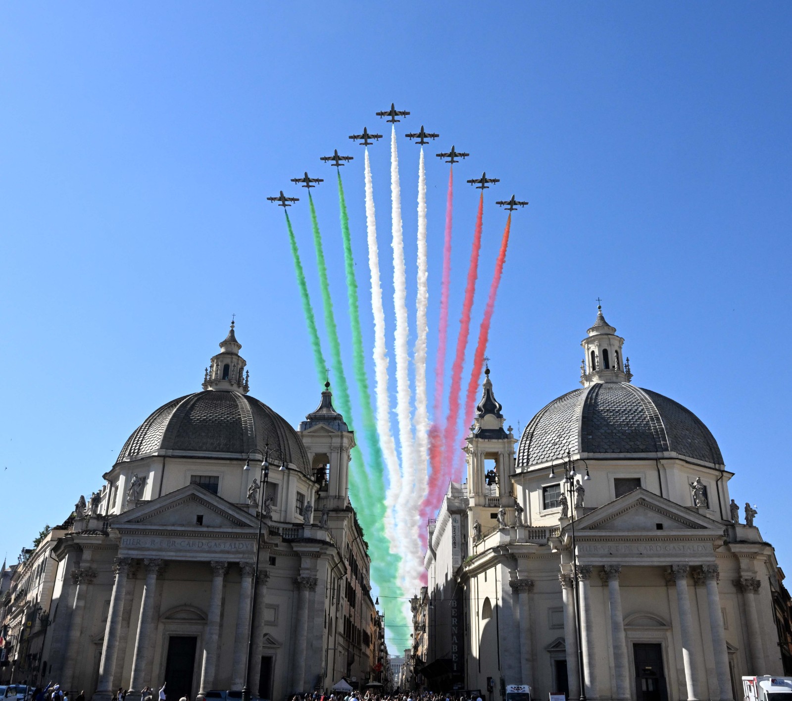 6月2日,意大利“三色箭”特技飛行表演隊在羅馬參加共和國日慶祝儀式。