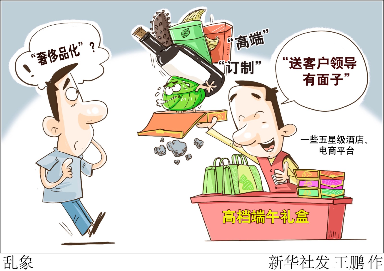 臨近端午節(jié),粽子銷售進入高峰期。近年來,相關部門一直大力整治粽子市場的過度包裝與“奢侈品化”。然而,“新華視點”記者近日在全國多地采訪發(fā)現(xiàn),一些五星級酒店、電商平臺銷售的粽子,經(jīng)過豪華包裝價格超千元,海鮮、紅酒、茶葉等高檔禮品成為禮盒搭售標配。有銷售人員坦言,高價粽子禮盒大多用于“打點關系”。