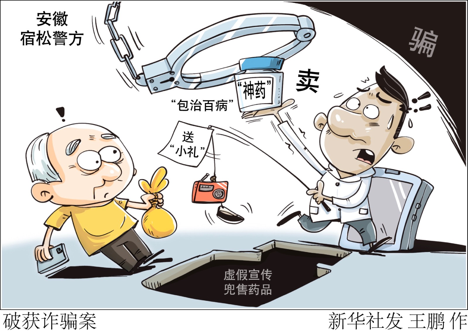 評書機、老人鞋等“小禮”請先笑納,“包治百病”的“神藥”快來試試?小心“騙你沒商量”!記者日前從安徽省安慶市宿松縣公安局了解到,當地警方打掉一個向中老年群體虛假宣傳兜售藥品進行詐騙的犯罪團伙,全國多地數千人上當,涉案金額近千萬元。