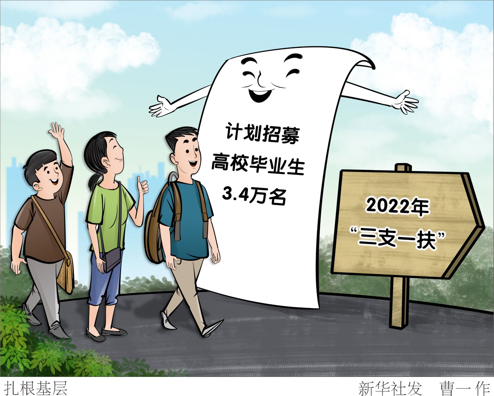 人力資源和社會保障部、財政部近日印發(fā)通知,明確2022年“三支一扶”計劃招募高校畢業(yè)生3.4萬名,招募計劃向鄉(xiāng)村振興重點幫扶縣、脫貧縣、易地扶貧搬遷大型和特大型集中安置區(qū)所在縣傾斜,對國家鄉(xiāng)村振興重點幫扶縣實行計劃單列。