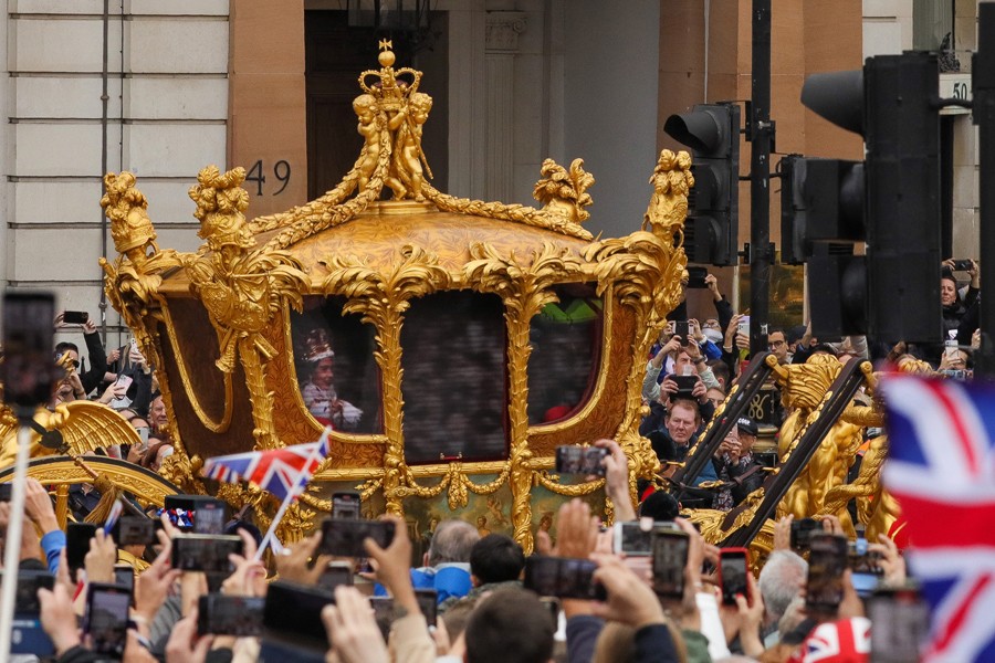 6月5日,人們?cè)谟?guó)倫敦觀看花車(chē)游行。